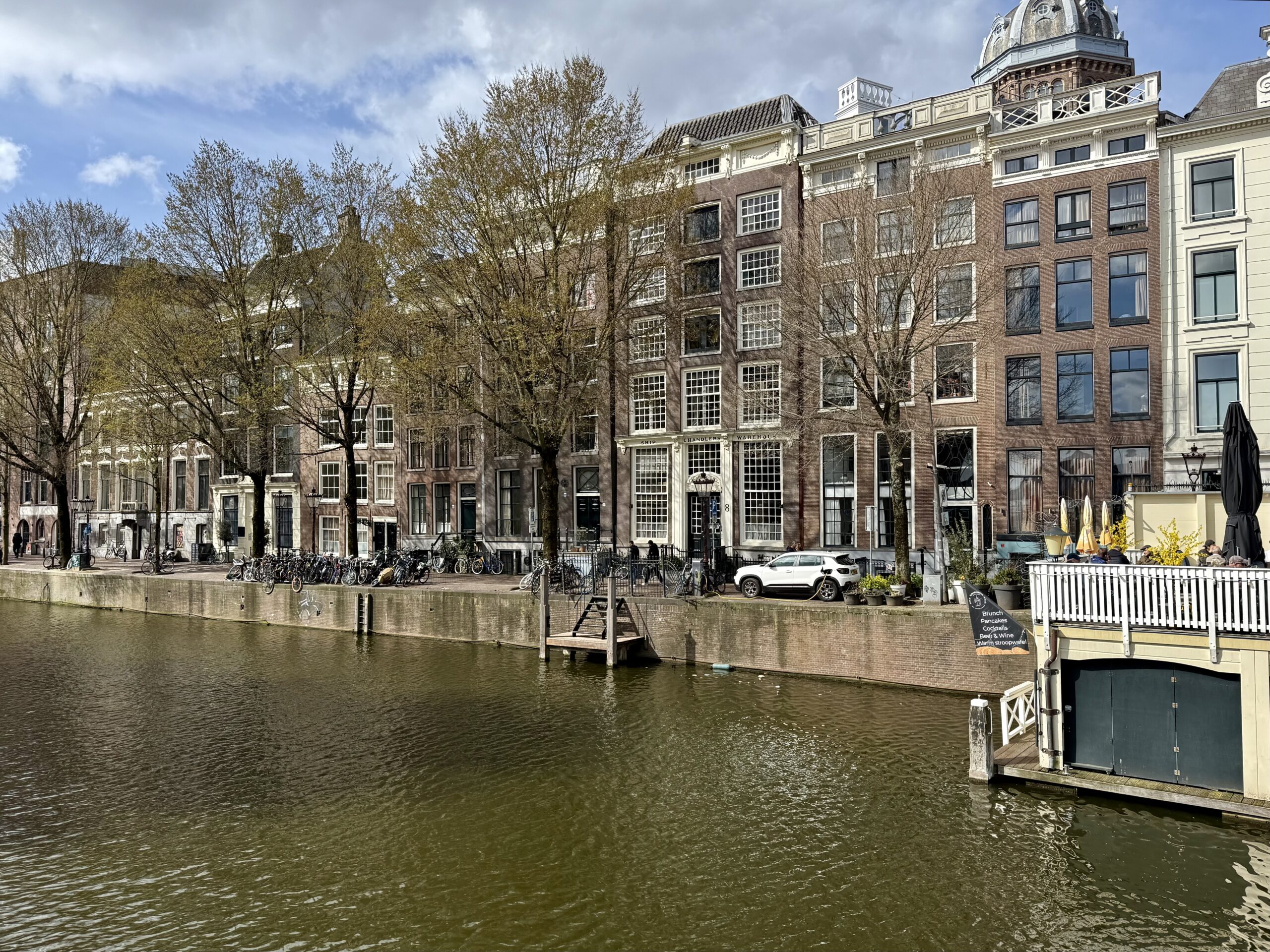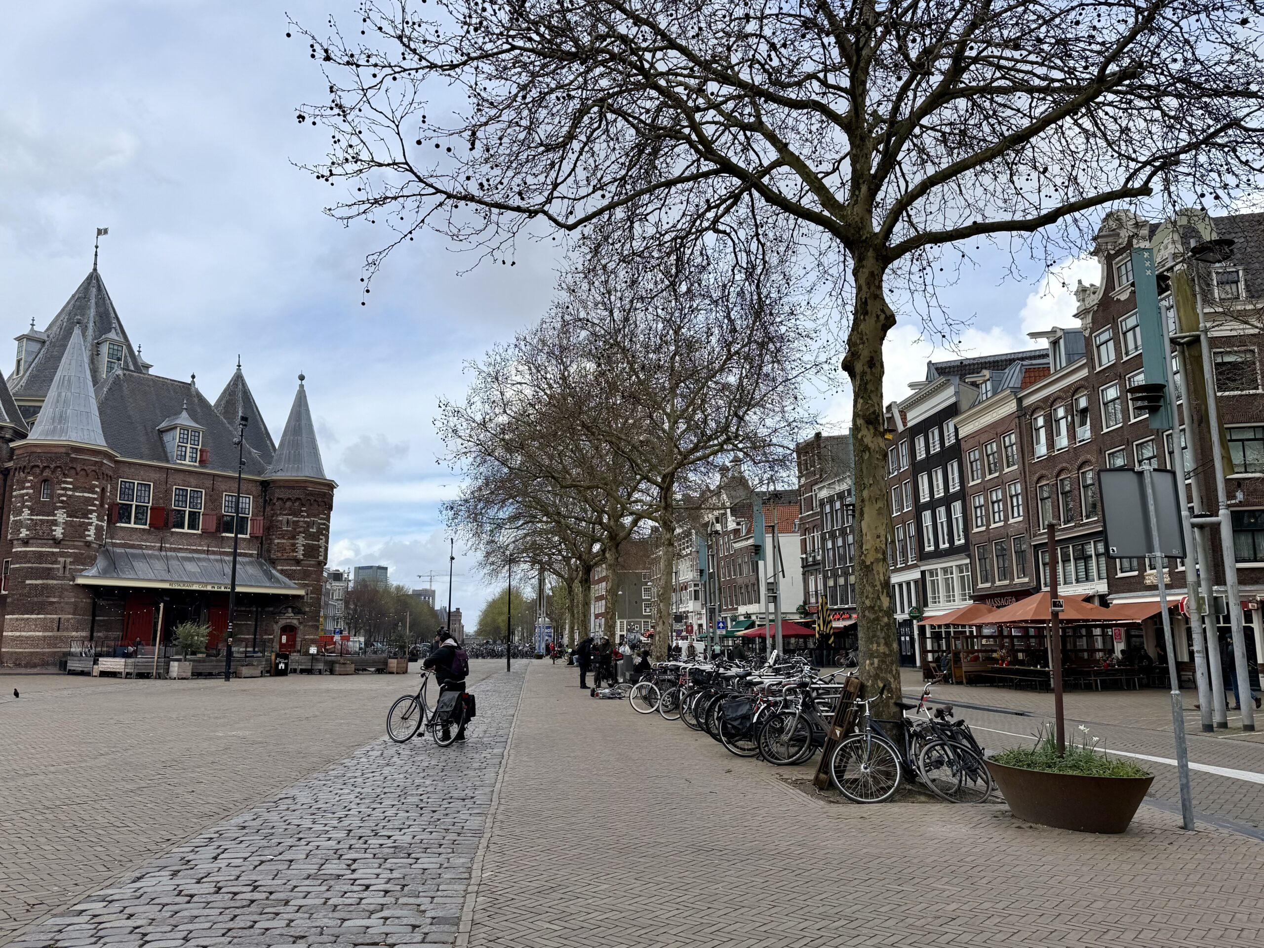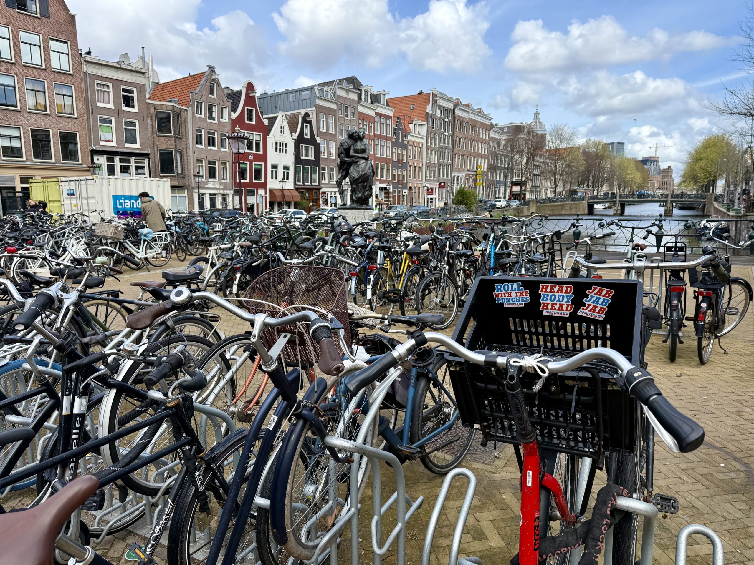 We left SFO at 6:30 pm, 23 March and landed at Schiphol airport at 4:00 pm the next day. A 25-minute taxi ride delivered us to our lodging on a canal in the Plantage district, just southeast of the city center. The neighborhood is dotted with large, modern university buildings and filled with bicycles—moving and parked.