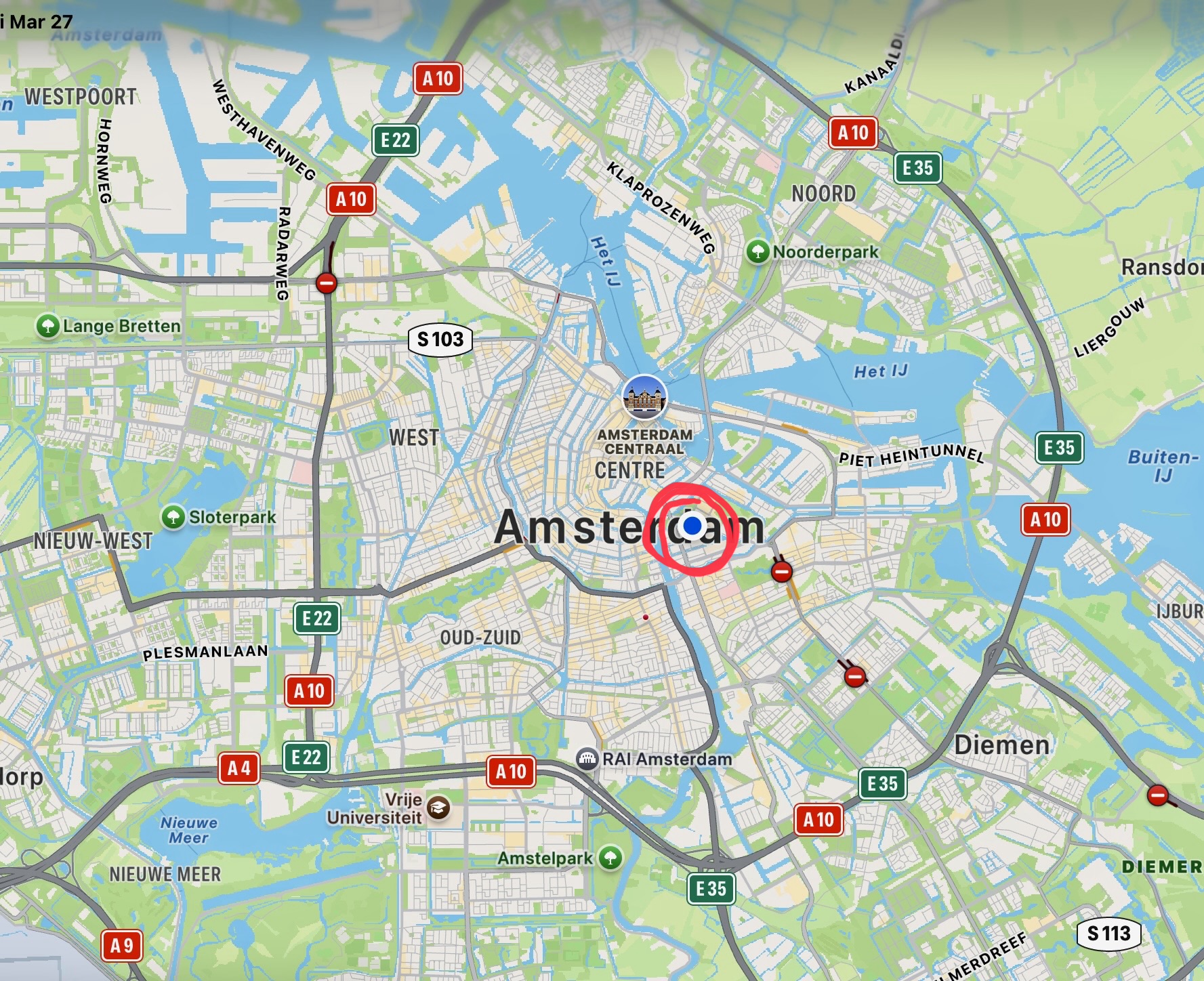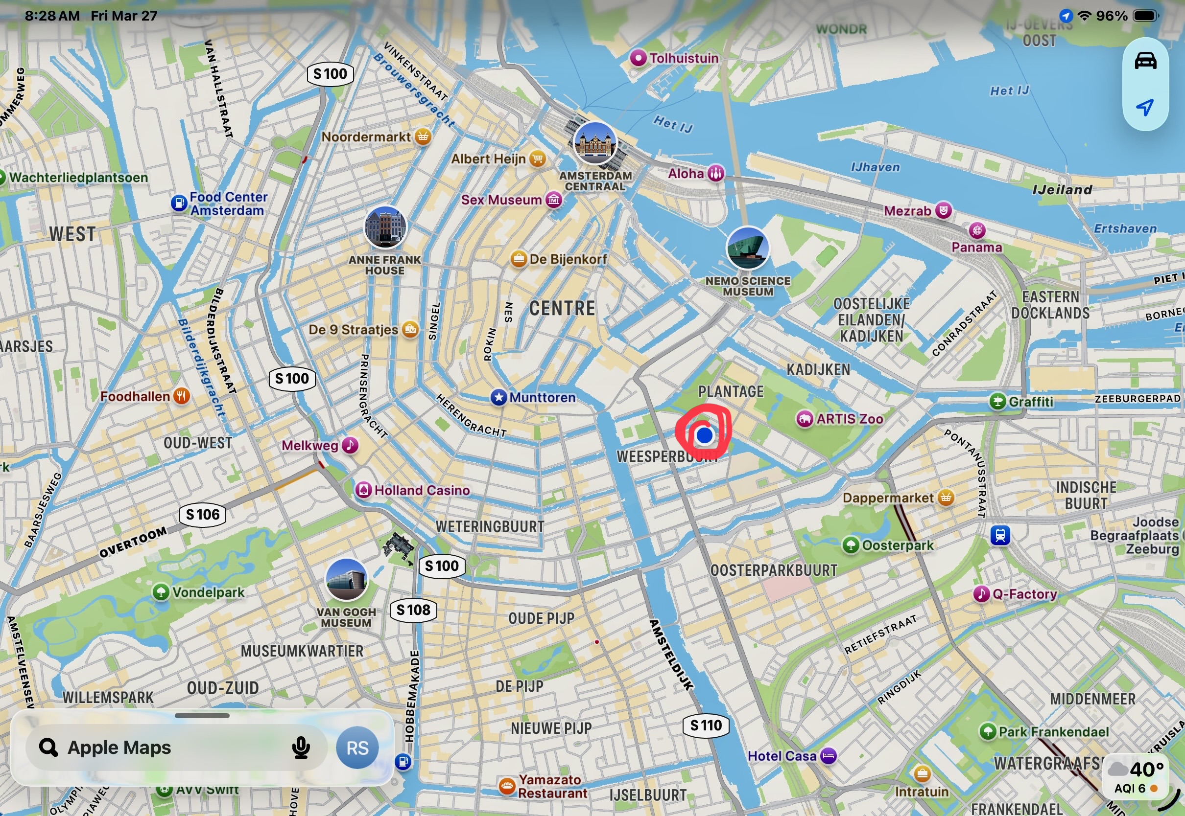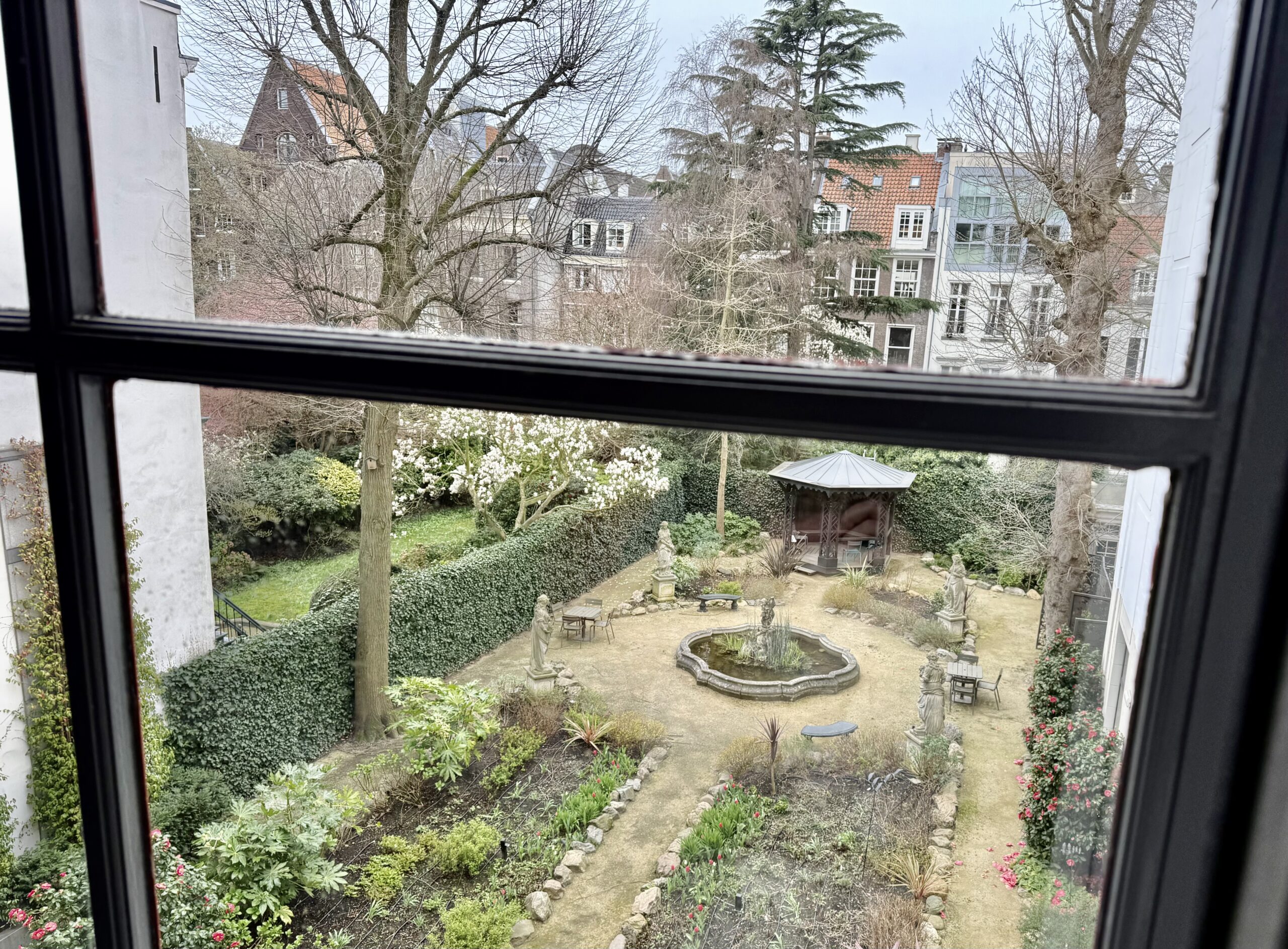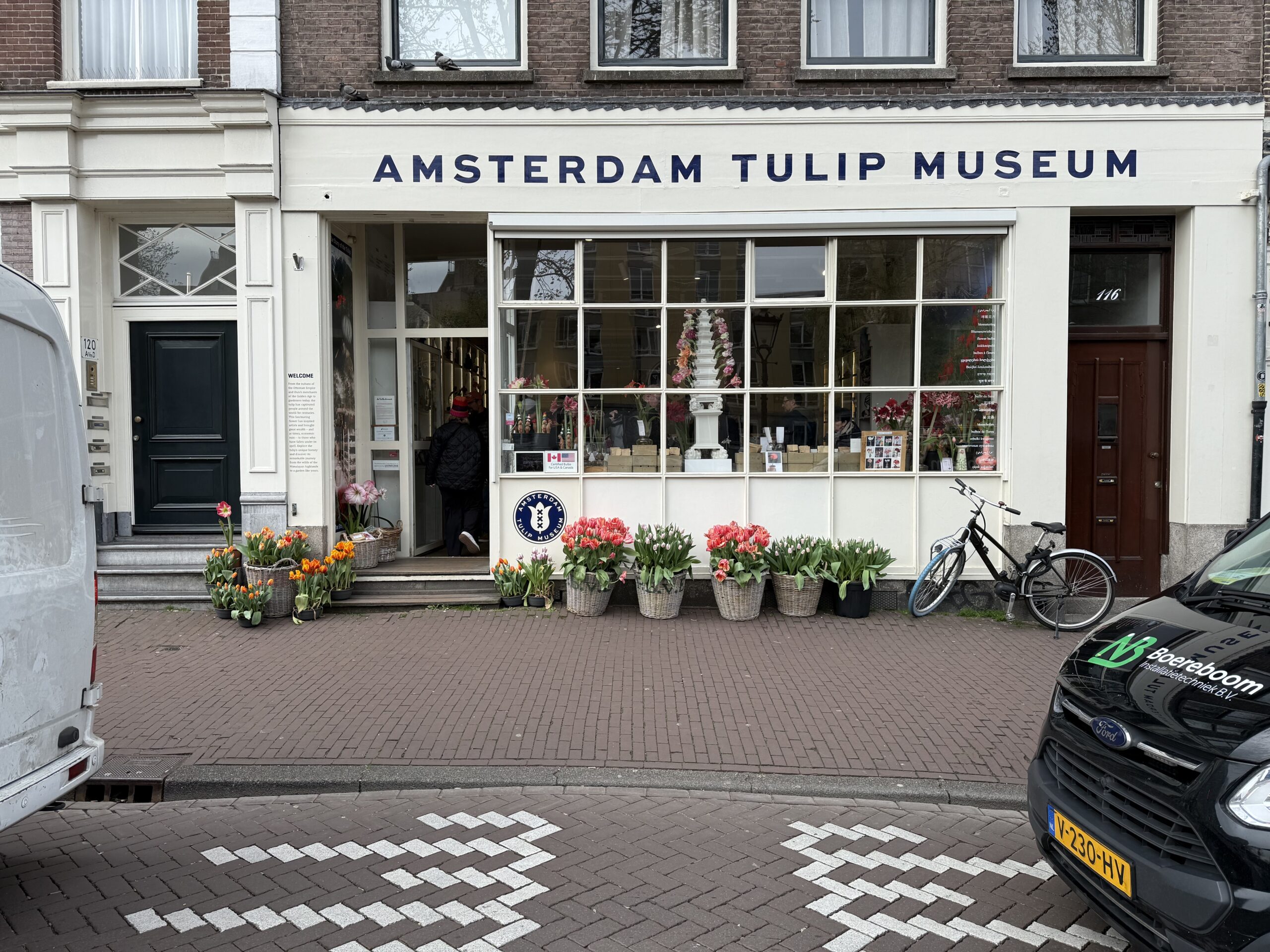 We left SFO at 6:30 pm, 23 March and landed at Schiphol airport at 4:00 pm the next day. A 25-minute taxi ride delivered us to our lodging on a canal in the Plantage district, just southeast of the city center. The neighborhood is dotted with large, modern university buildings and filled with bicycles—moving and parked.
