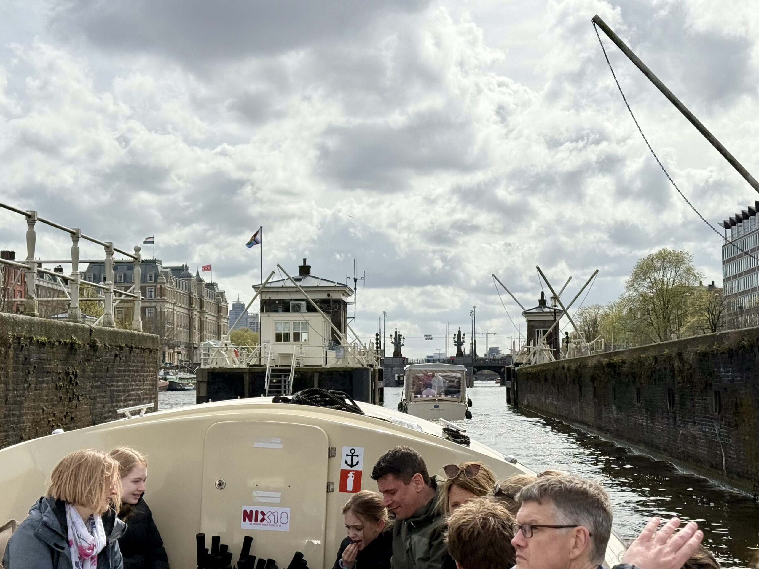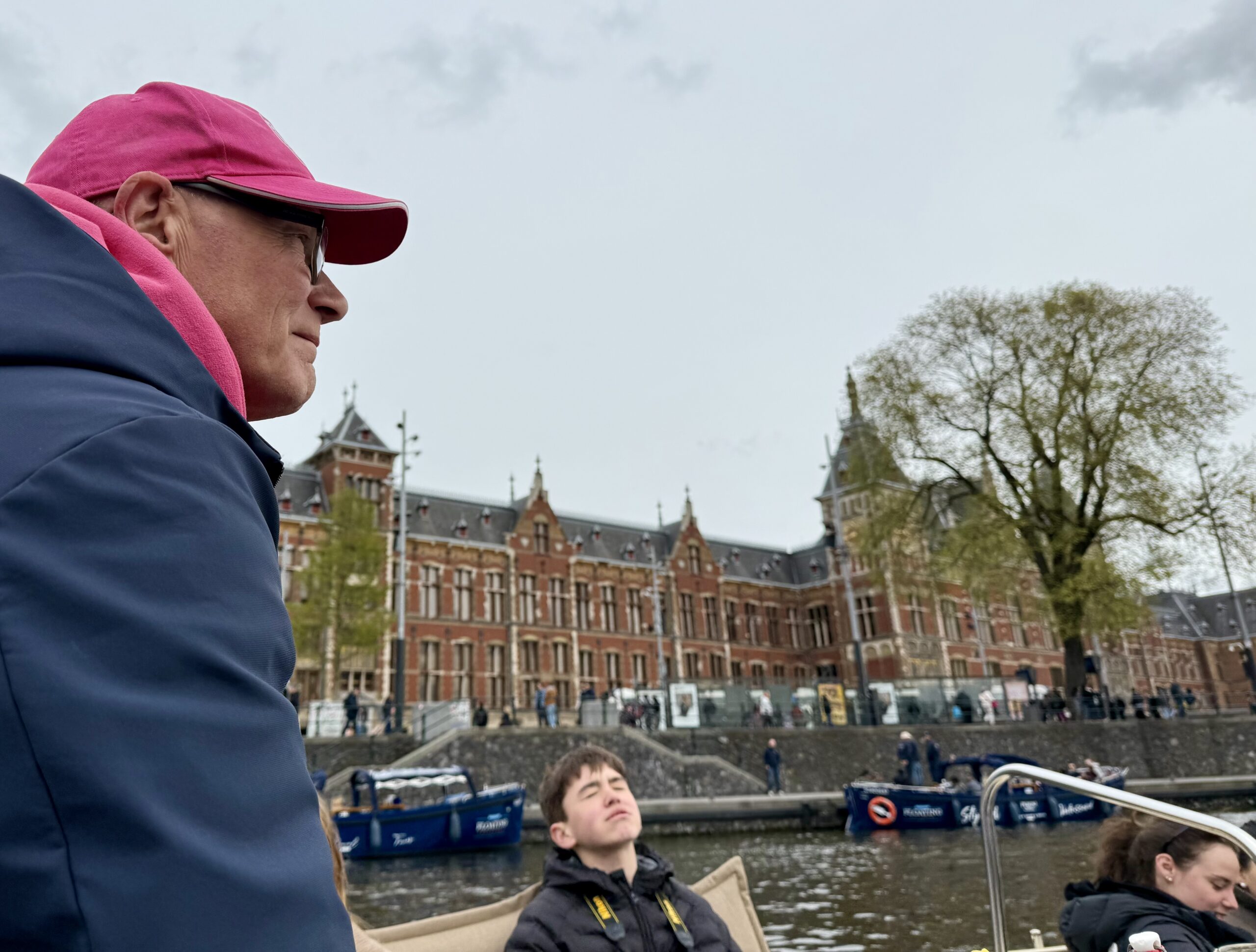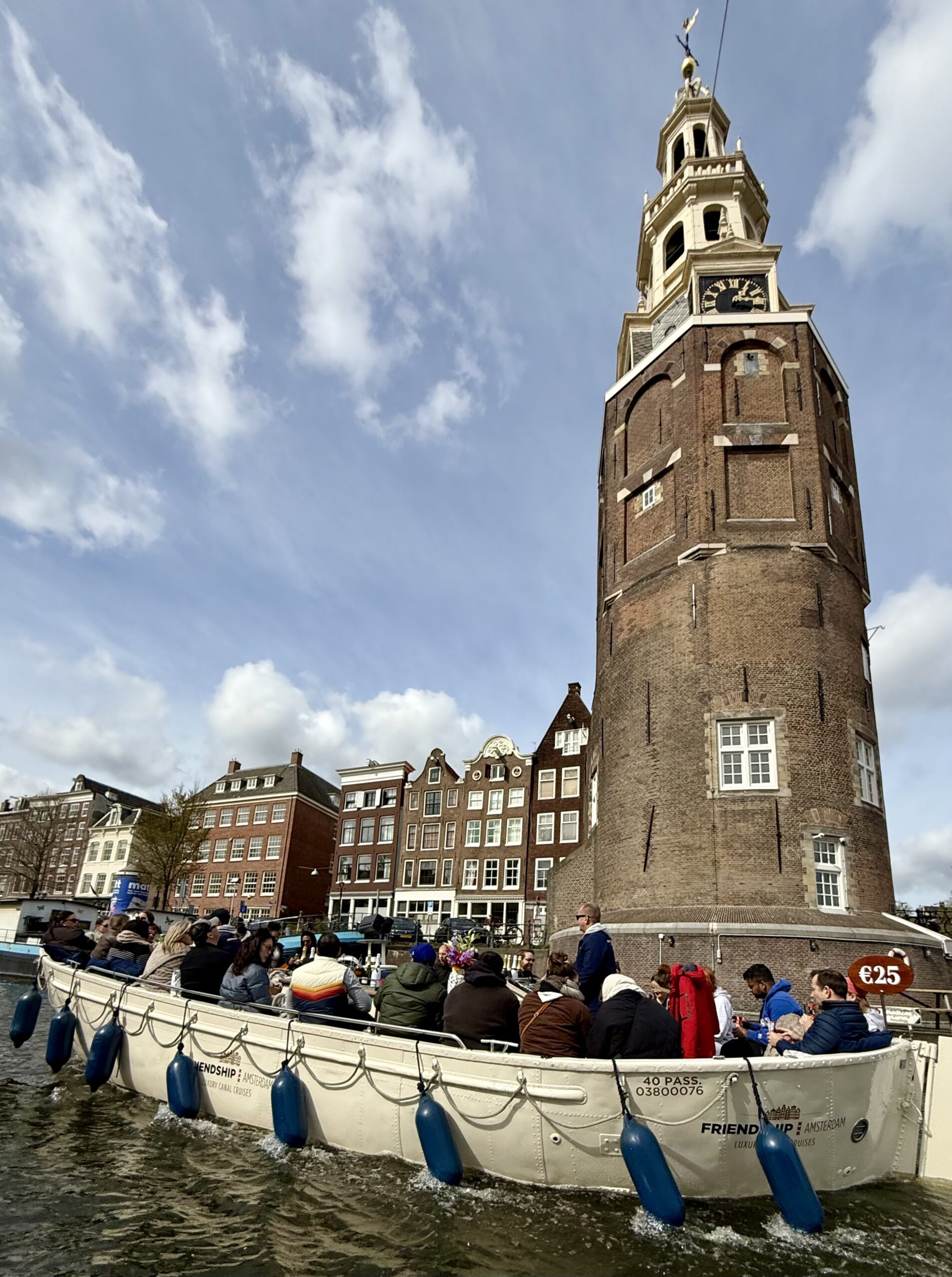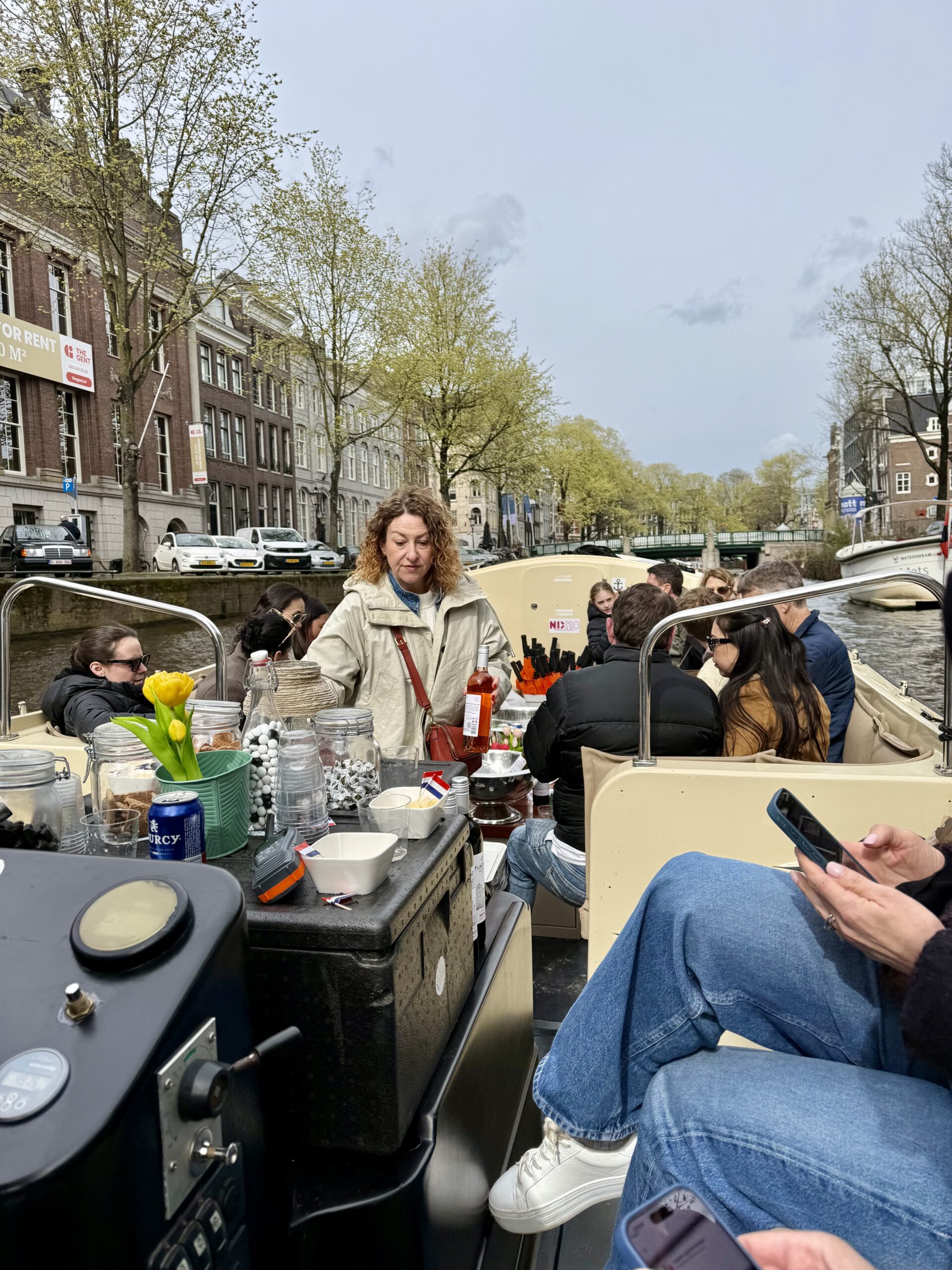 Bonnie loves a boat ride. Our excellent 90-minute canal tour started near Central Station. The weather was better than expected for an open boat, which was well supplied with wine and snacks. Captain DJ offered dad jokes along with well-informed observations on Amsterdam history. His narrative ranged from accounts of the original stock exchange to stories about the Rolling Stones. He also pointed out the bridge where Rebecca (of Ted Lasso) fell into the canal and met the handsome Dutch man. (Bonnie had been looking for it.)
