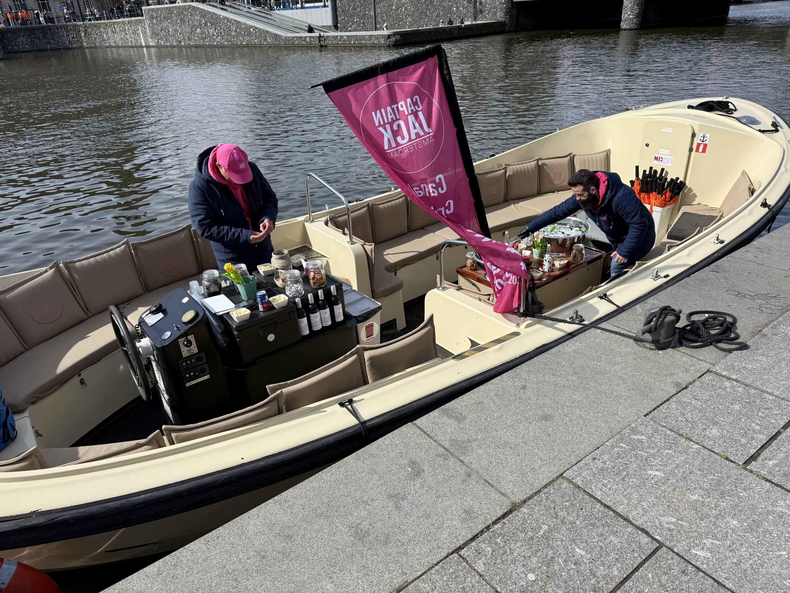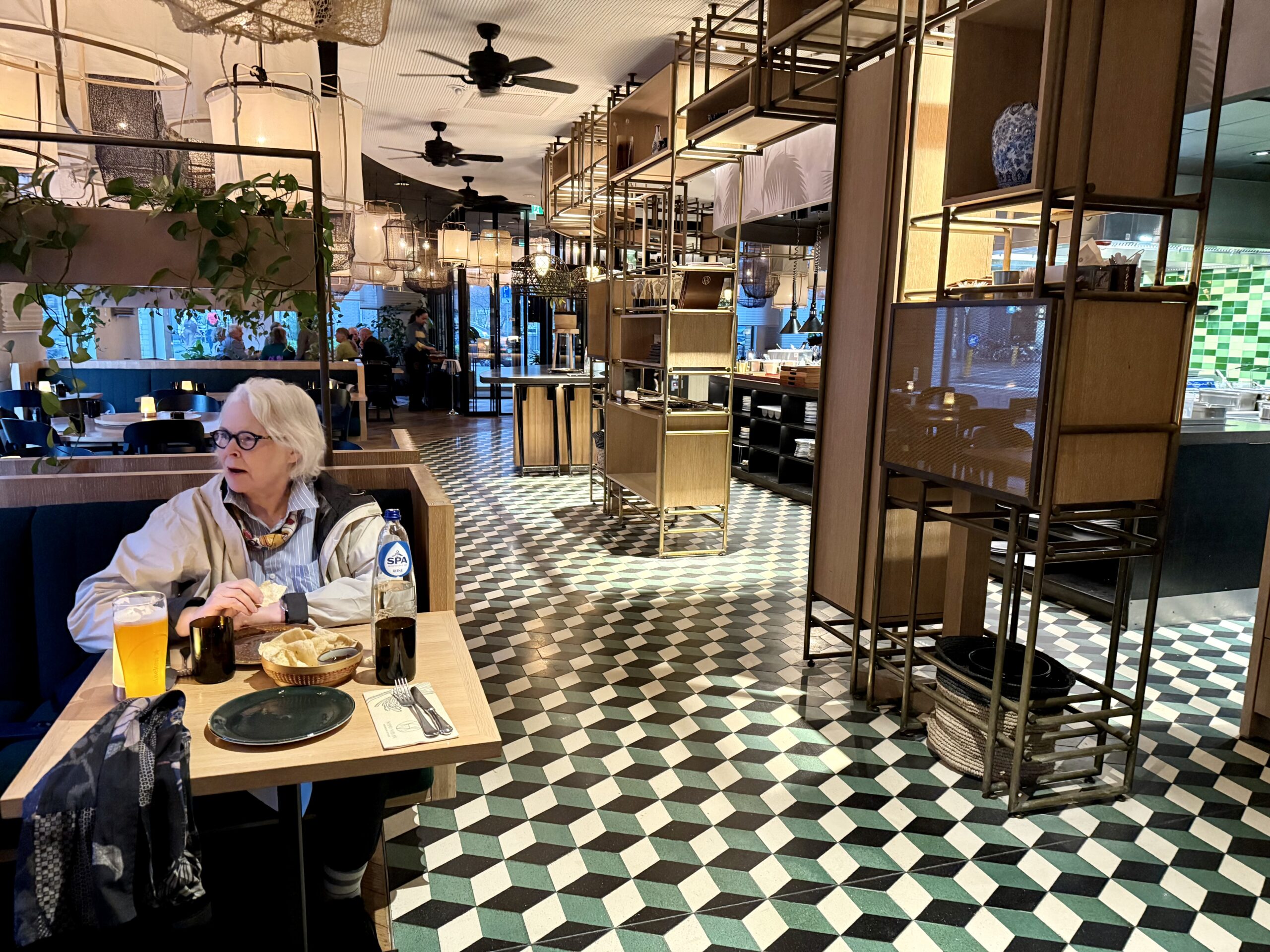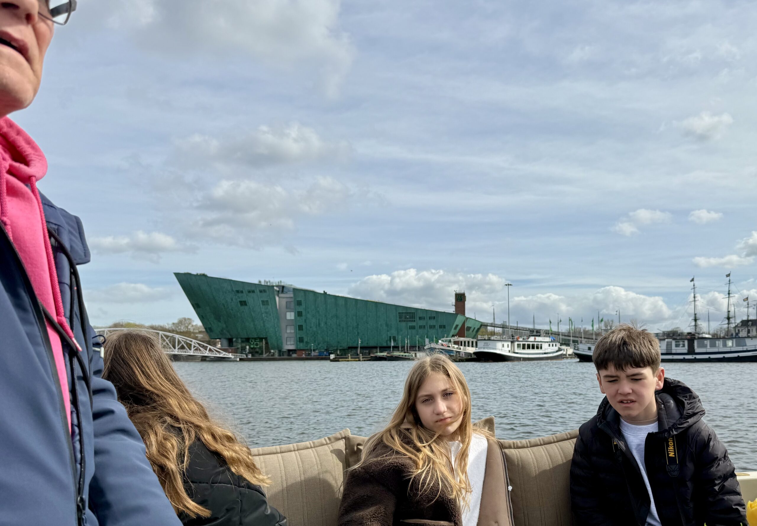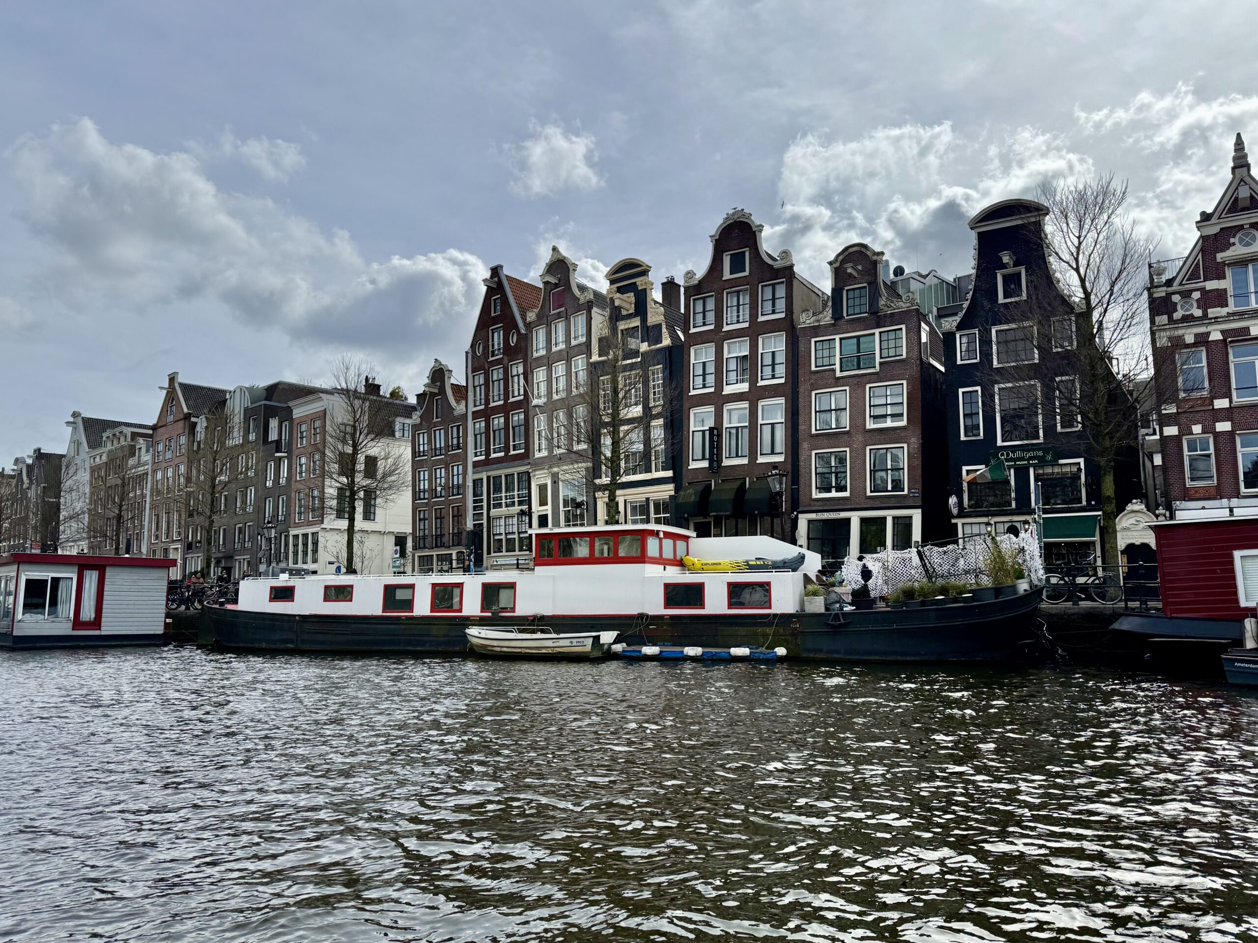 Bonnie loves a boat ride. Our excellent 90-minute canal tour started near Central Station. The weather was better than expected for an open boat, which was well supplied with wine and snacks. Captain DJ offered dad jokes along with well-informed observations on Amsterdam history. His narrative ranged from accounts of the original stock exchange to stories about the Rolling Stones. He also pointed out the bridge where Rebecca (of Ted Lasso) fell into the canal and met the handsome Dutch man. (Bonnie had been looking for it.)