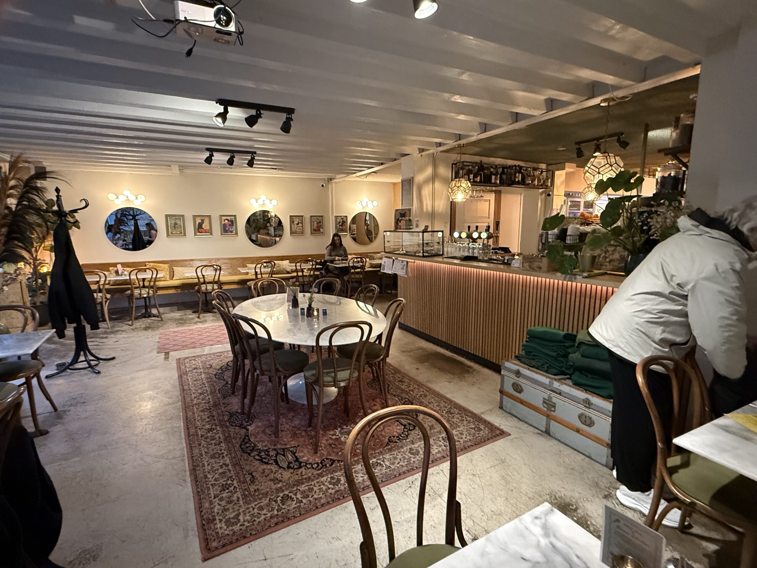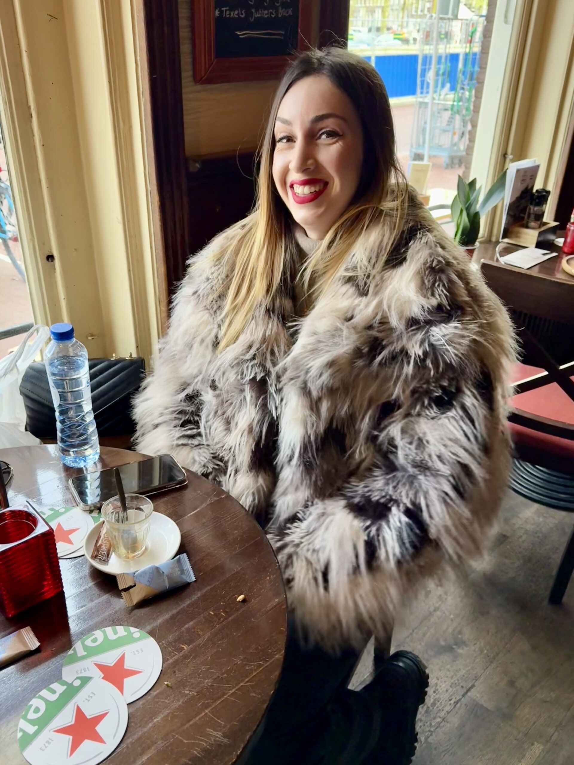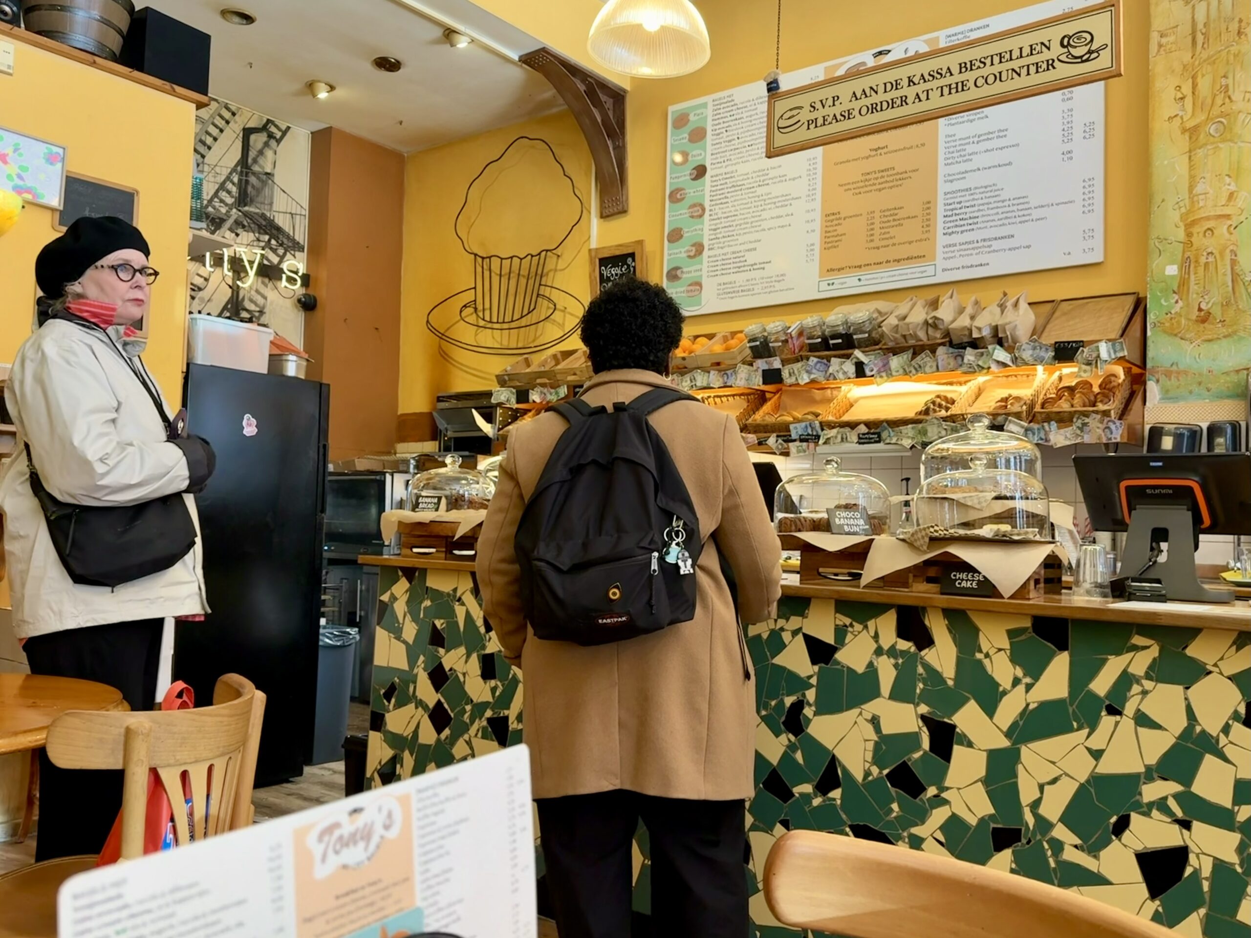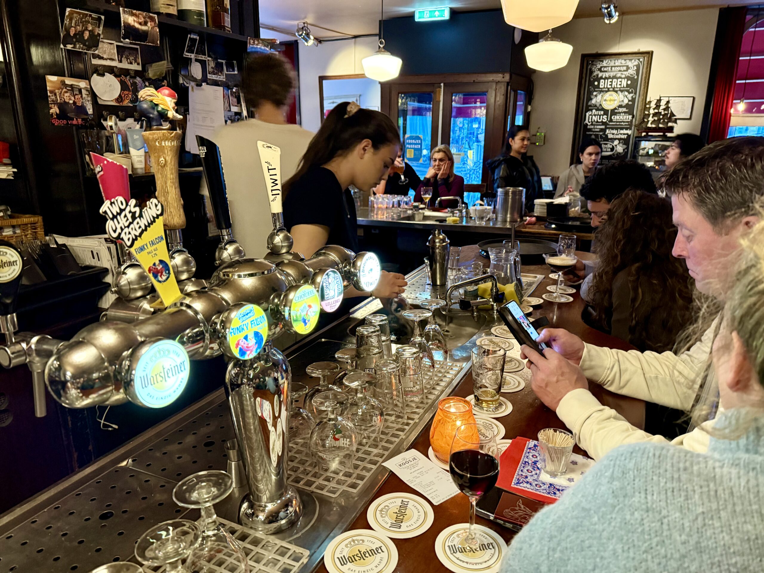 Bonnie loves a boat ride. Our excellent 90-minute canal tour started near Central Station. The weather was better than expected for an open boat, which was well supplied with wine and snacks. Captain DJ offered dad jokes along with well-informed observations on Amsterdam history. His narrative ranged from accounts of the original stock exchange to stories about the Rolling Stones. He also pointed out the bridge where Rebecca (of Ted Lasso) fell into the canal and met the handsome Dutch man. (Bonnie had been looking for it.)