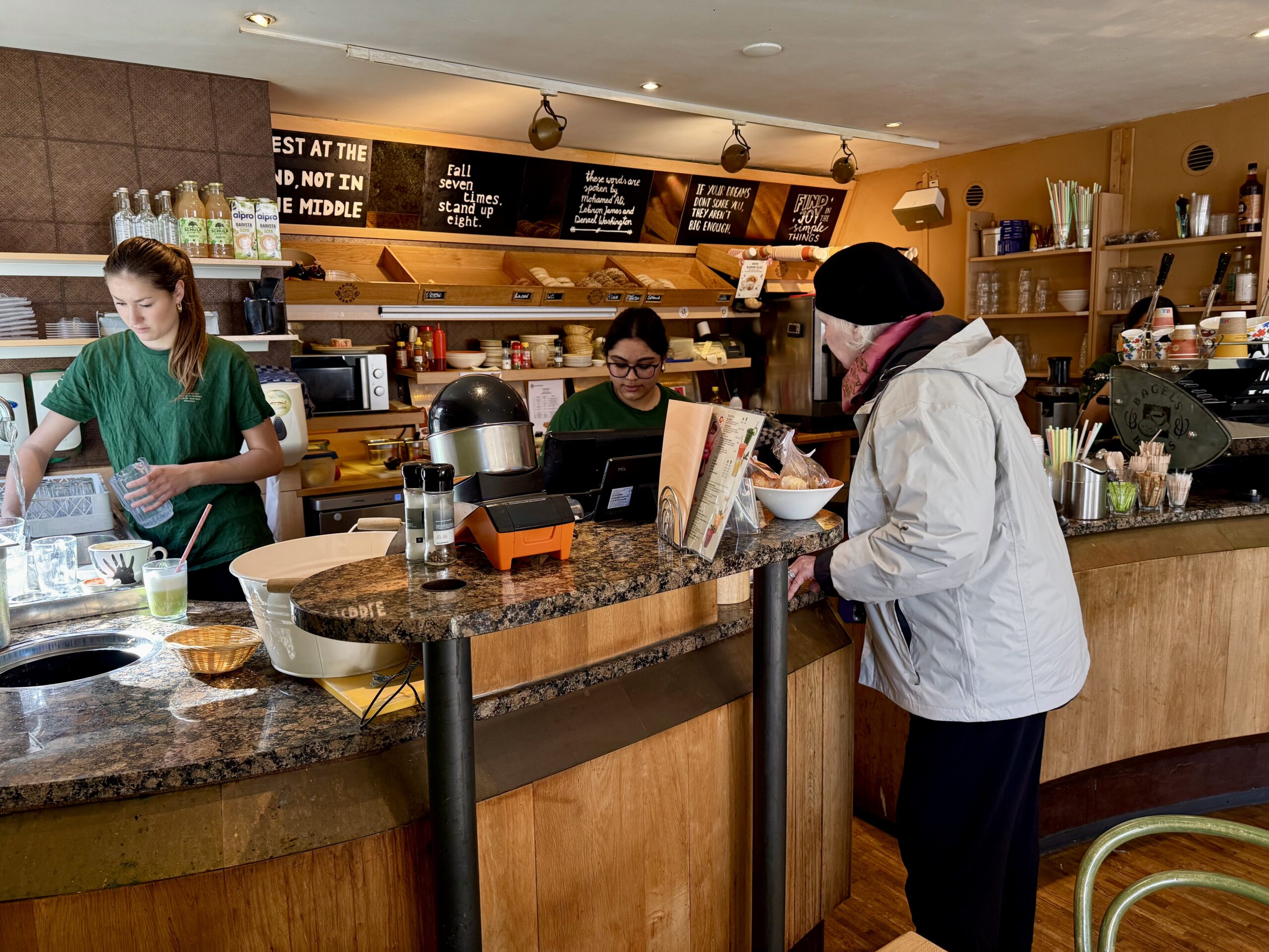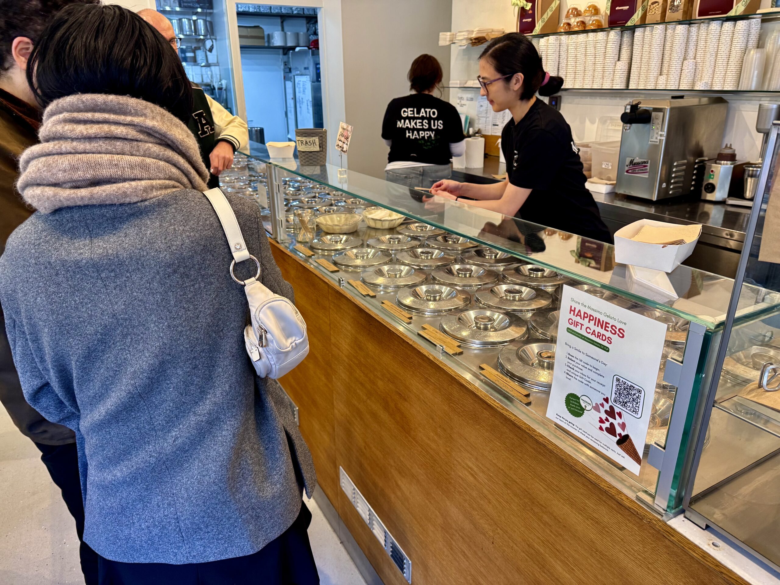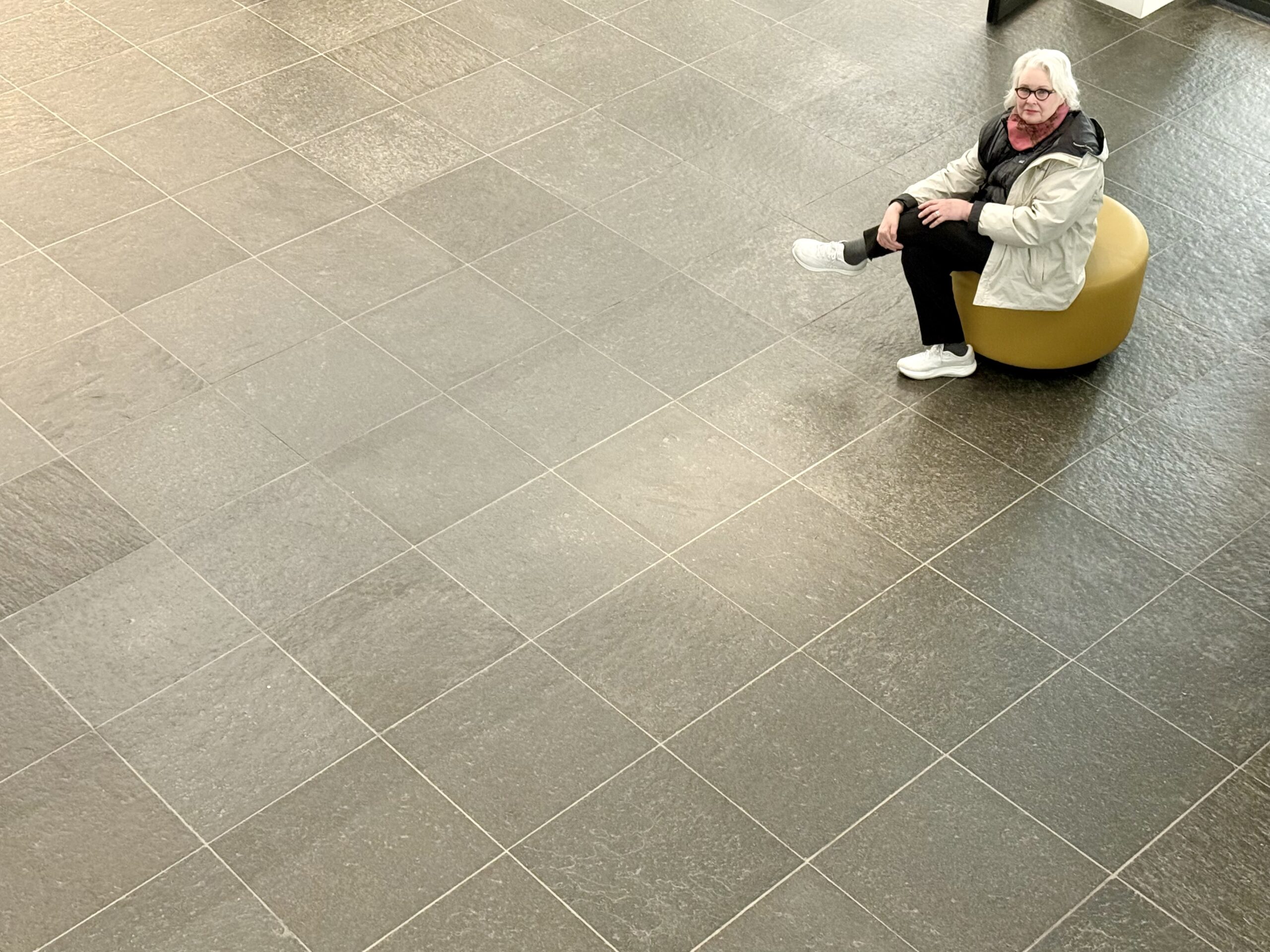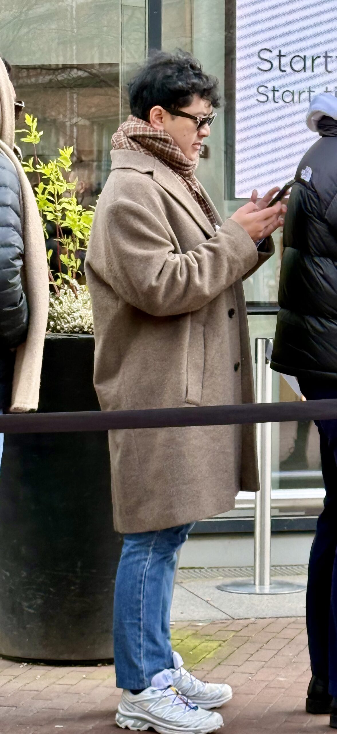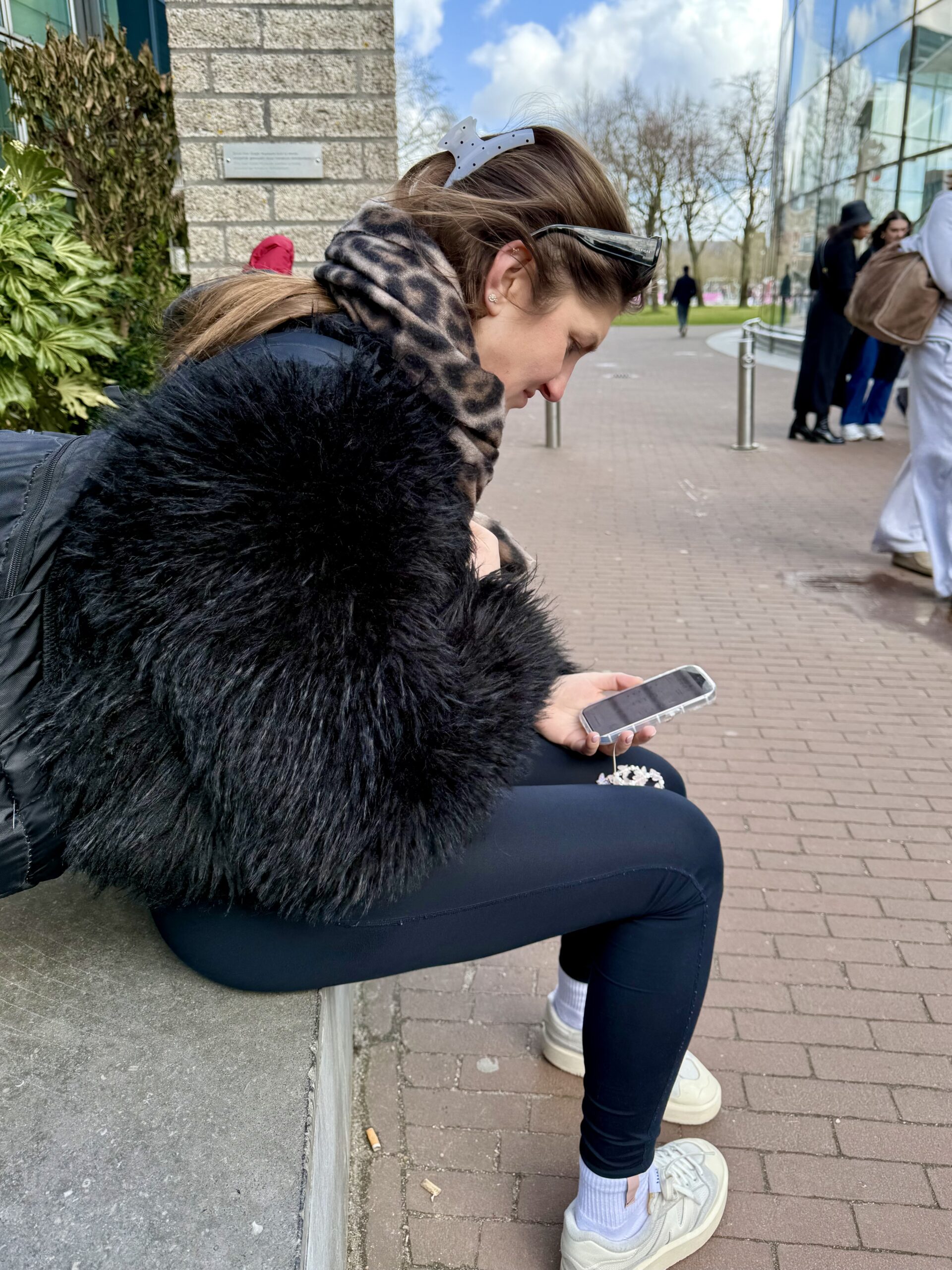 Especially for Diana and Alicia. In addition to puffy coats and North Face parkas, lots of lovely, long wool coats on men and women, often in chocolate brown or oatmeal. All kinds of fuzzy, furry jackets. Heavy, black leather, laced boots. Hair in high ballet buns. Wide-legged trousers on men and women.