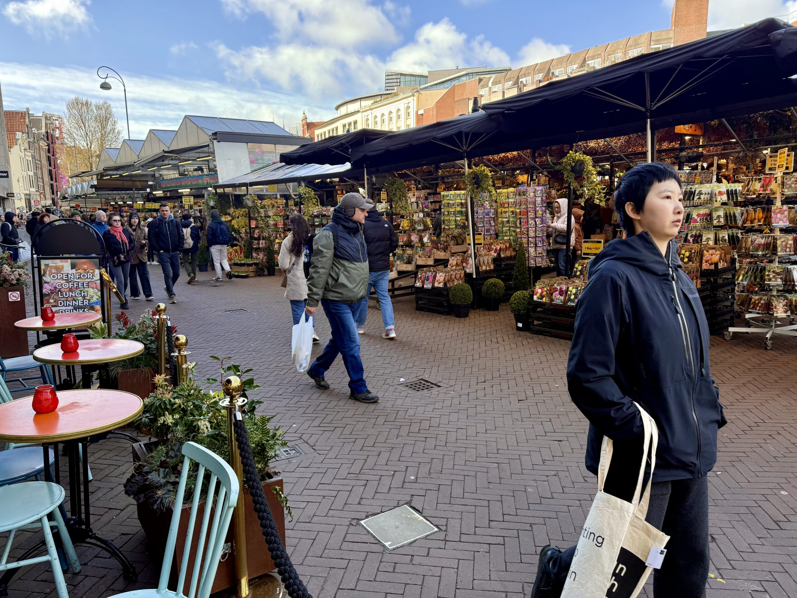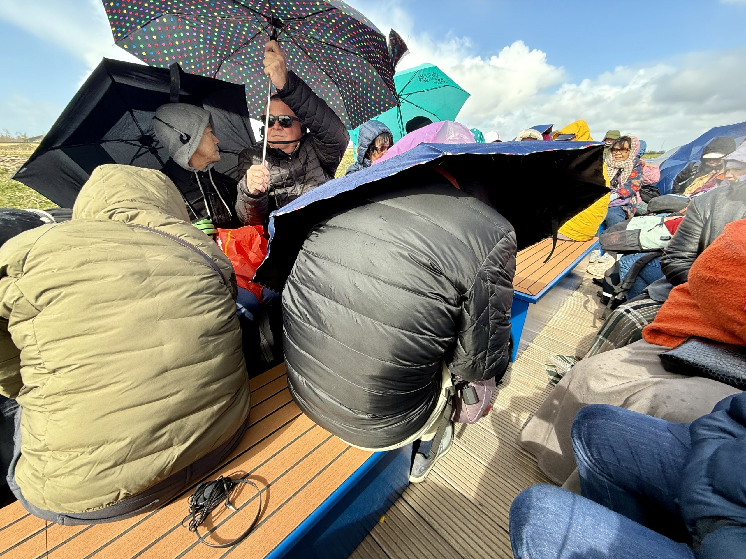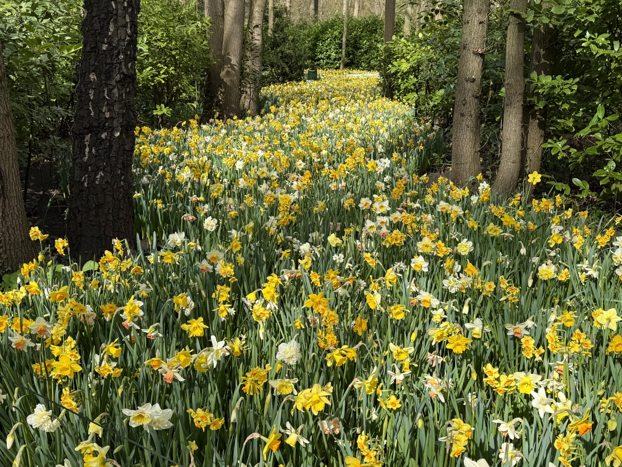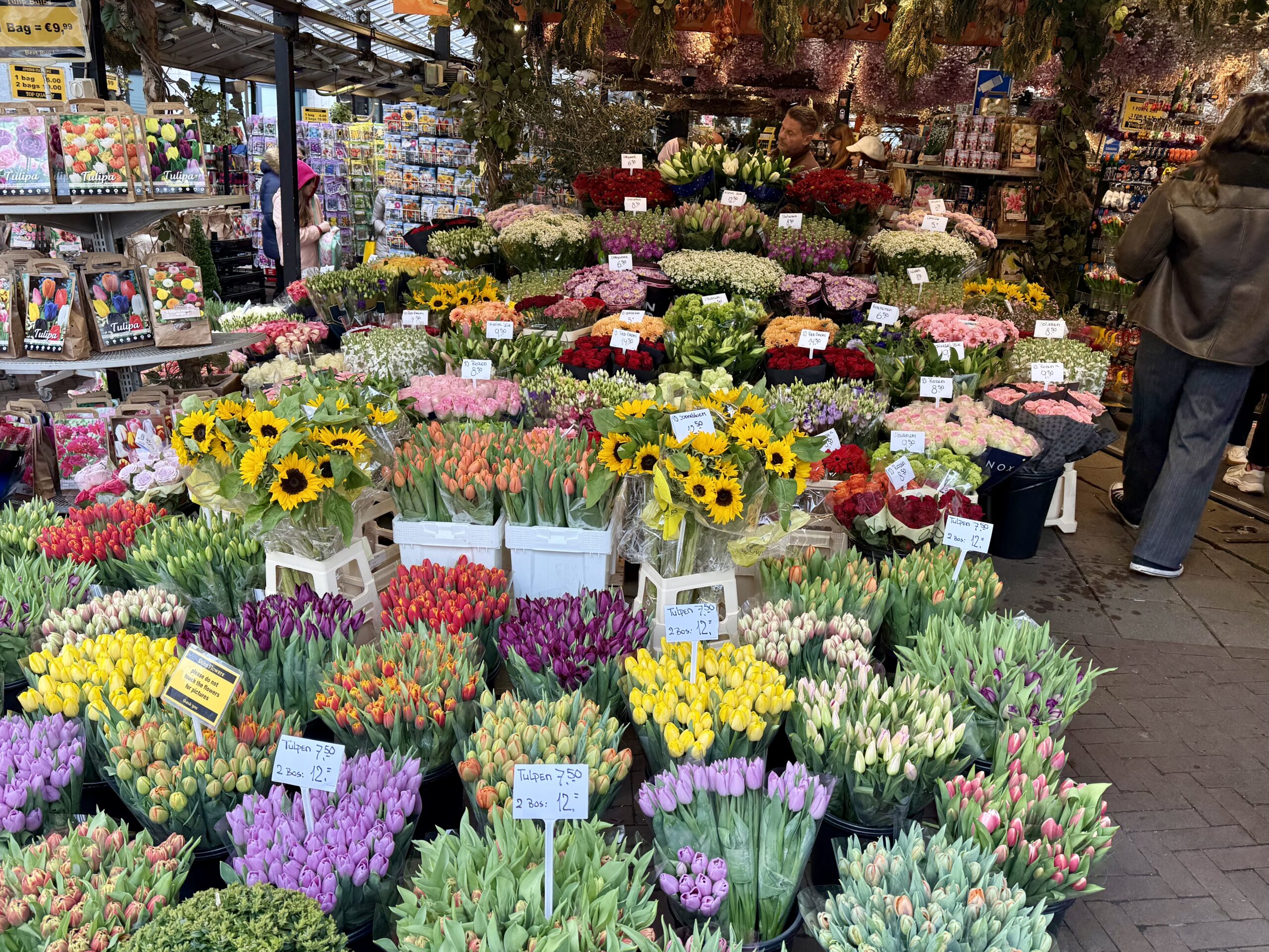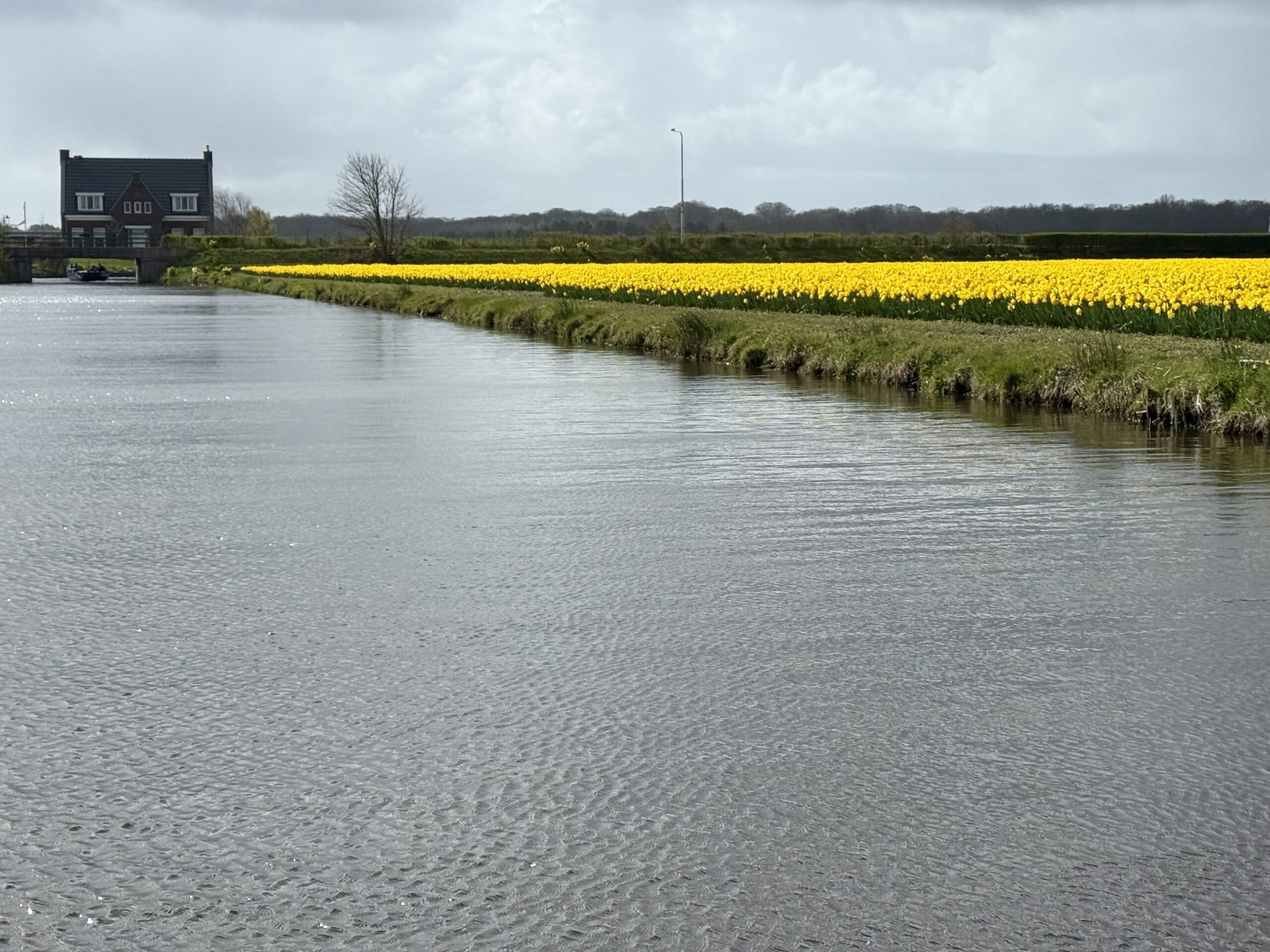 Boat Ride – At the edge of the garden, we climbed into a canal boat to navigate through fields of tulips, daffodils, and hyacinths. Workers cut flowers daily for commercial sales. It was cold, and we even survived a brief hail shower.