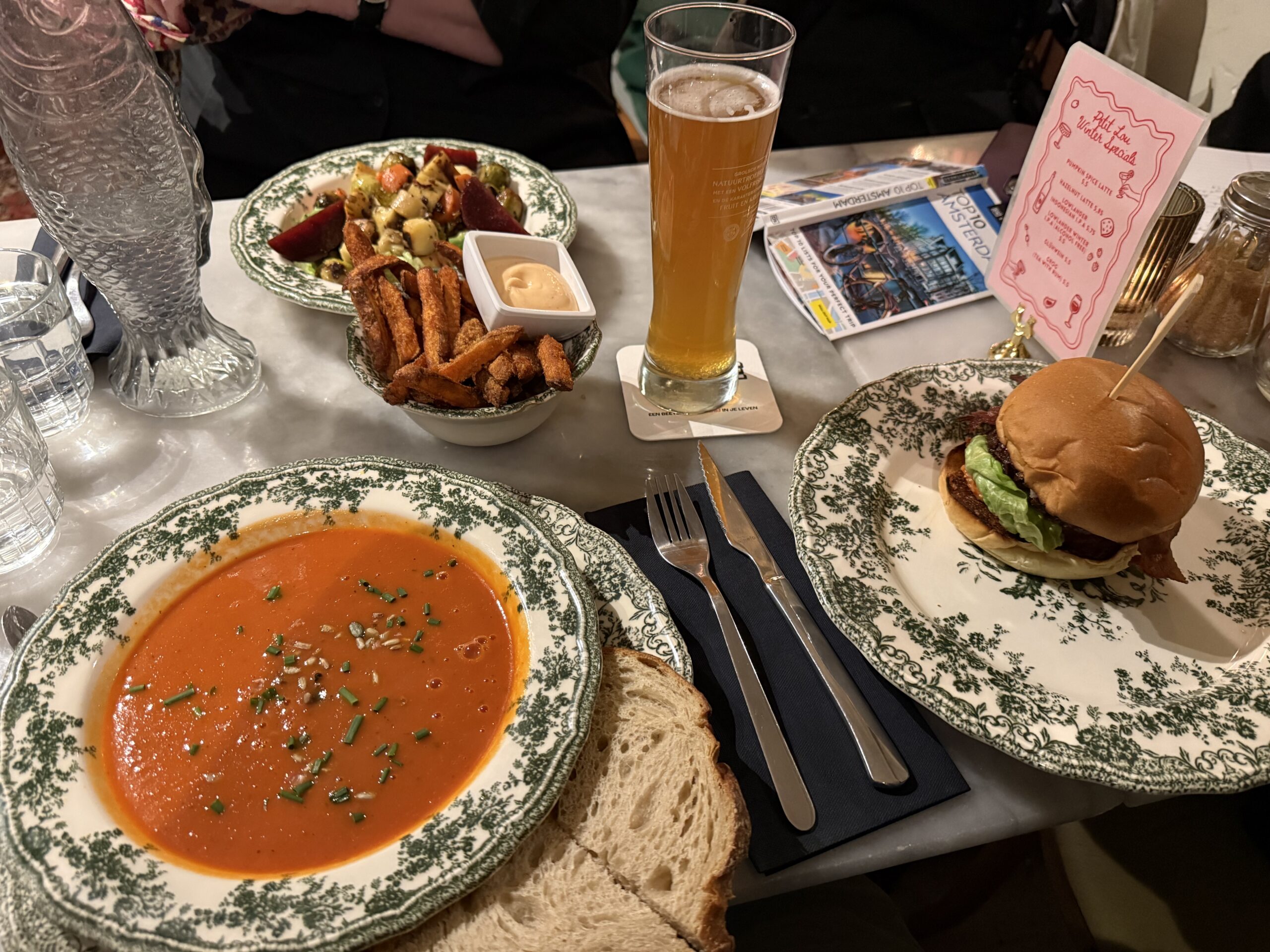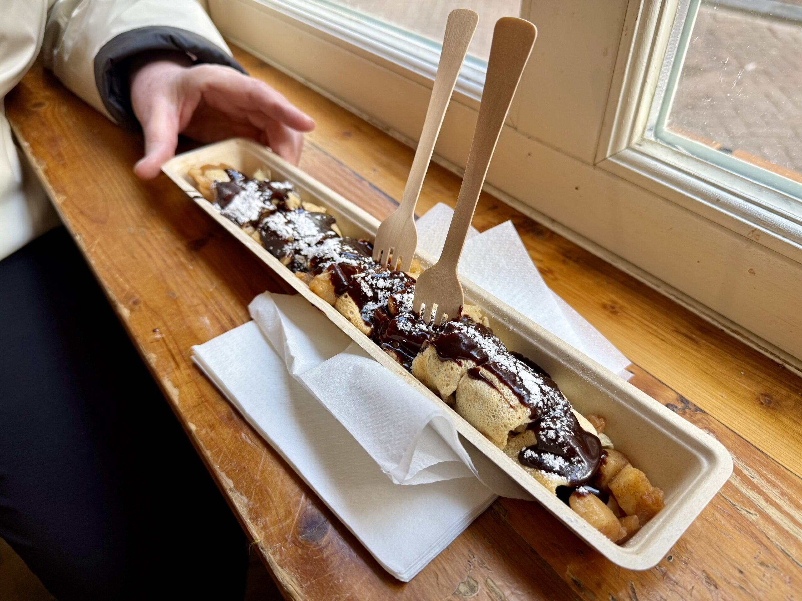Amsterdam is filled, and we mean filled, with restaurants. They offer Italian, Indian, Indonesian, Japanese, Chinese, Argentine, Turkish, French, and many other cuisines. They do not, other than the ubiquitous waffle/crepe houses, seem to have a specific Dutch cuisine. We are avoiding Italian, as that will be our next stop.