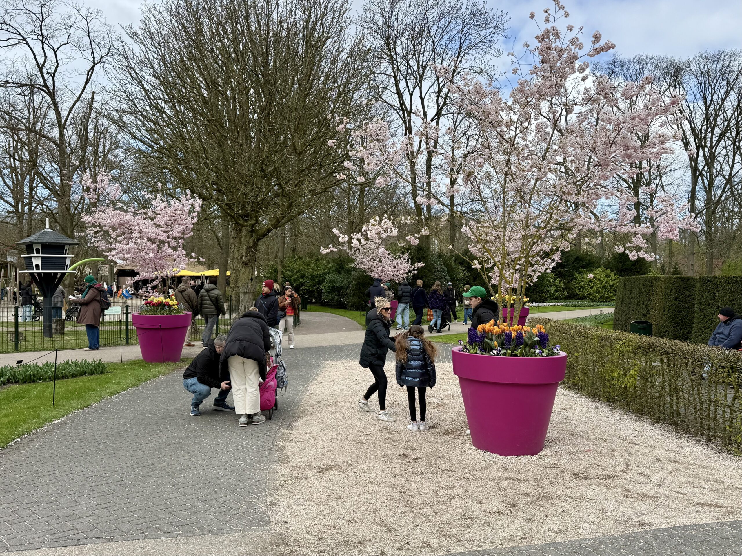 The garden is an impressive operation with walkways, shops, cafes, playgrounds, and pavilions for indoor displays. Even well before peak season, hordes of visitors in fleets of buses and private vehicles descend on the park. Think of it as a floral Disneyland, open mid March to late May.