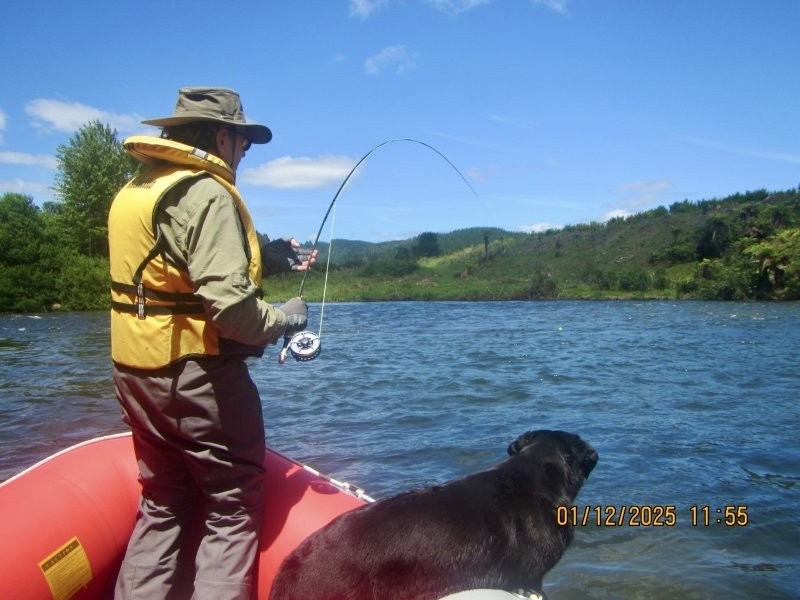 We fished the Whakapapa River about one hour drive from the River Lodge in Ohakune. Rocky (not boldery) river bottom. We sighted two, hooked two, netted one about 3.5 pounds. Hooked one that ran with the fly and leaped about one meter off the water. Josh estimated it to be about five pounds. Of course, it never made it to the net. Walked about 3.4 miles.