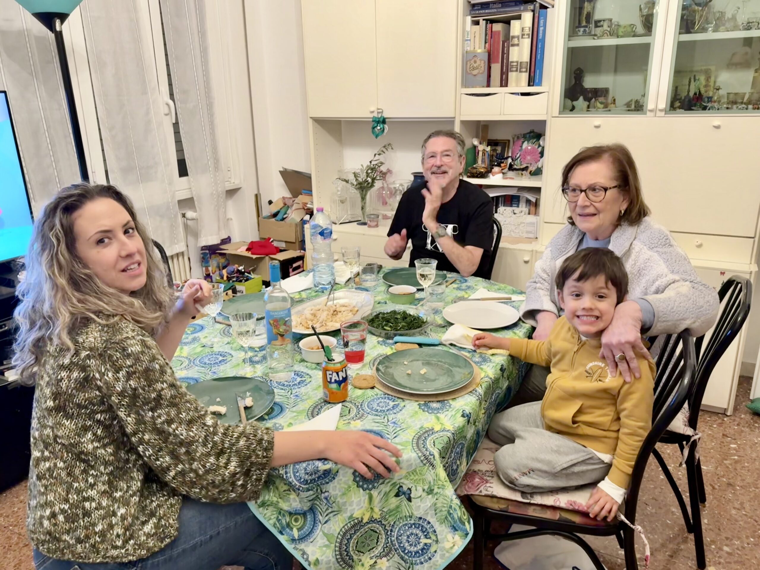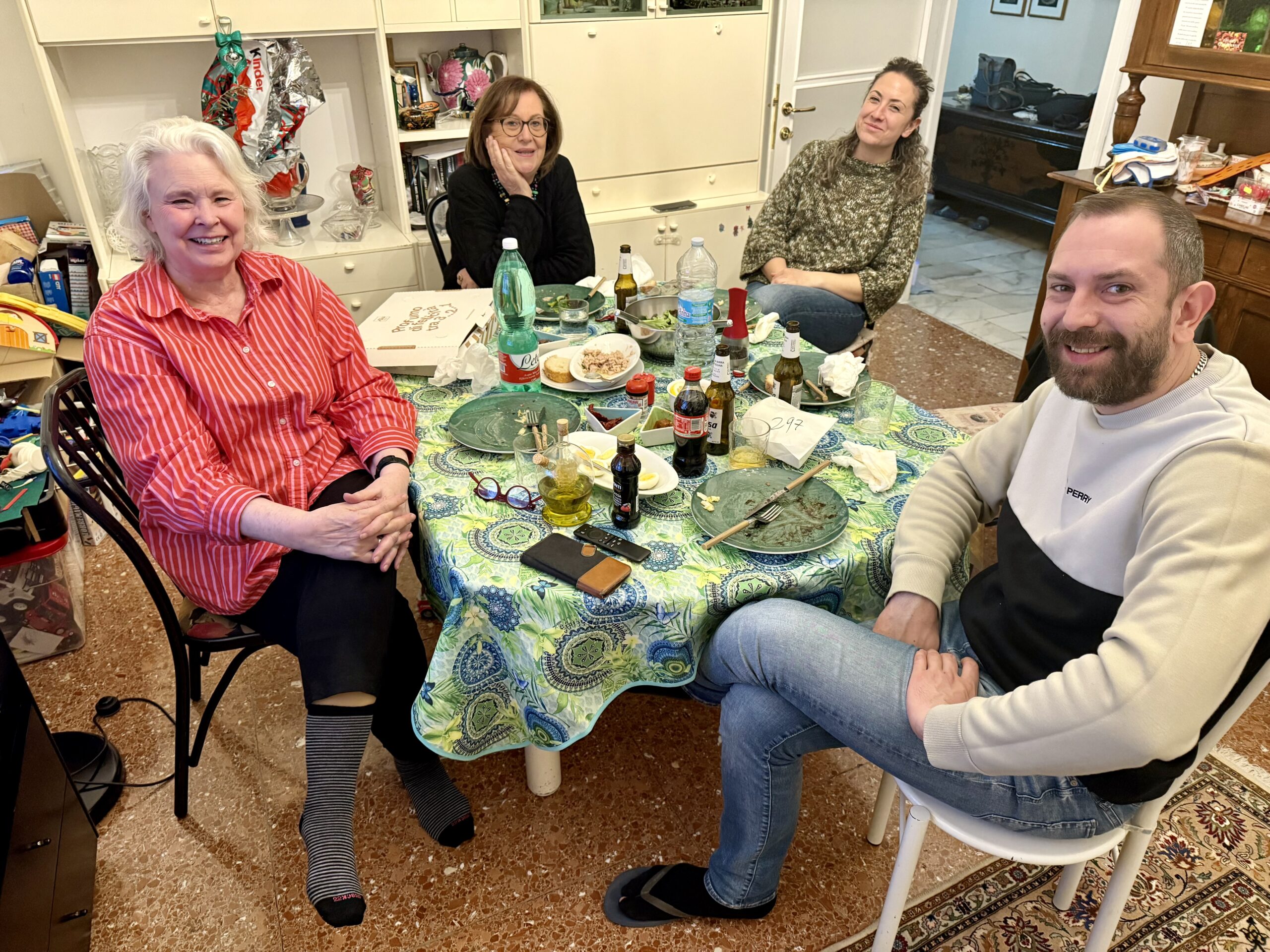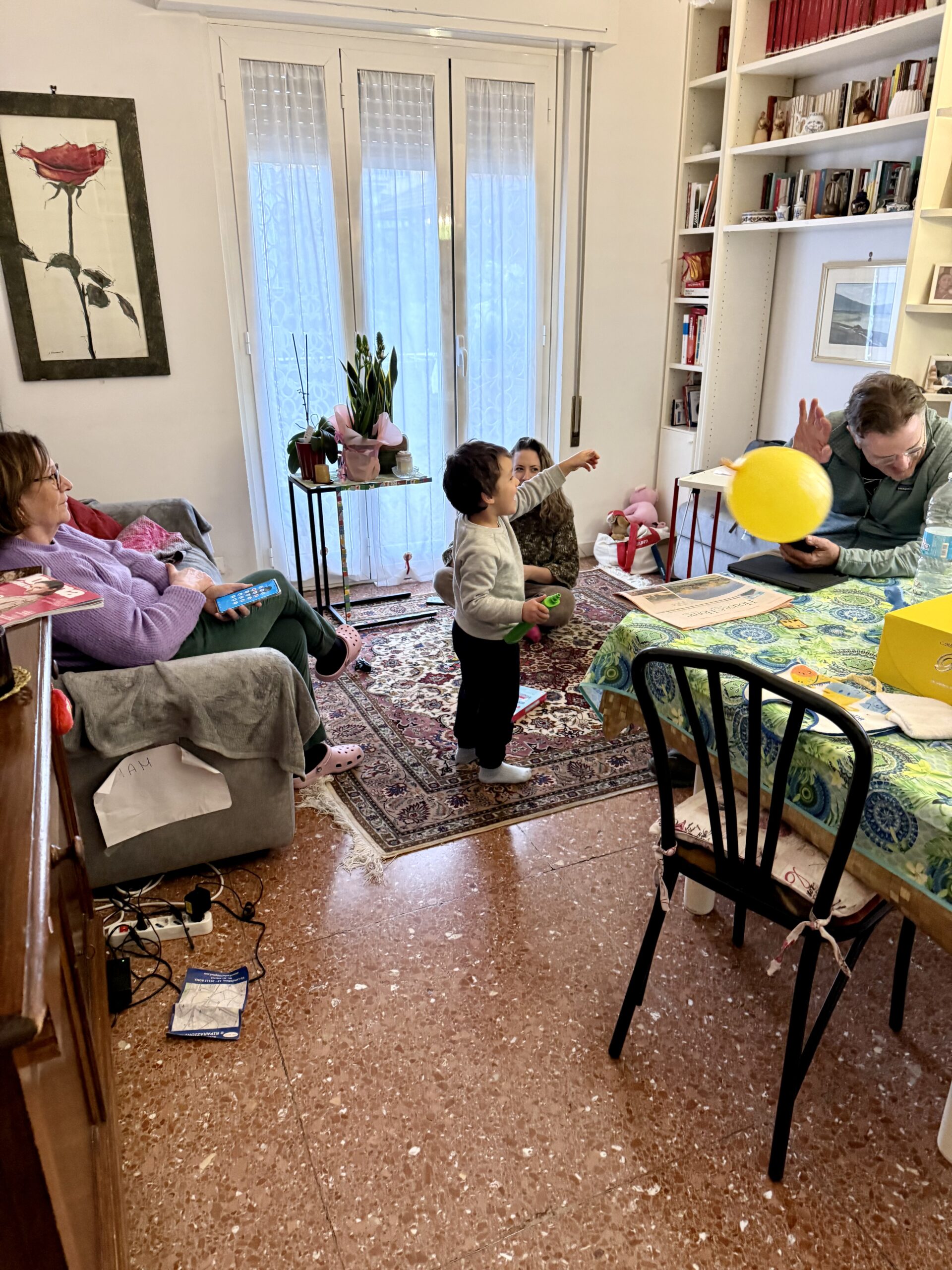 Kitty: You remember our cousins, the sisters Adriana and Luciana Sabbatini. And now Luciana’s daughter Marta and her almost four-year-old son Liam have moved in with Luciana so things are lively. Toys everywhere. In addition, Luciana’s son Dario flew in from southern France to spend Easter with all of us.