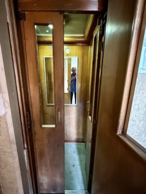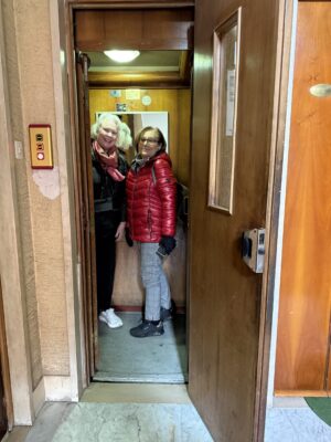 Bonnie has a soft spot for Luciana and Adriana’s classic elevator. Robert remembers it packed with his family’s luggage in 1962. It can just hold three people without luggage.