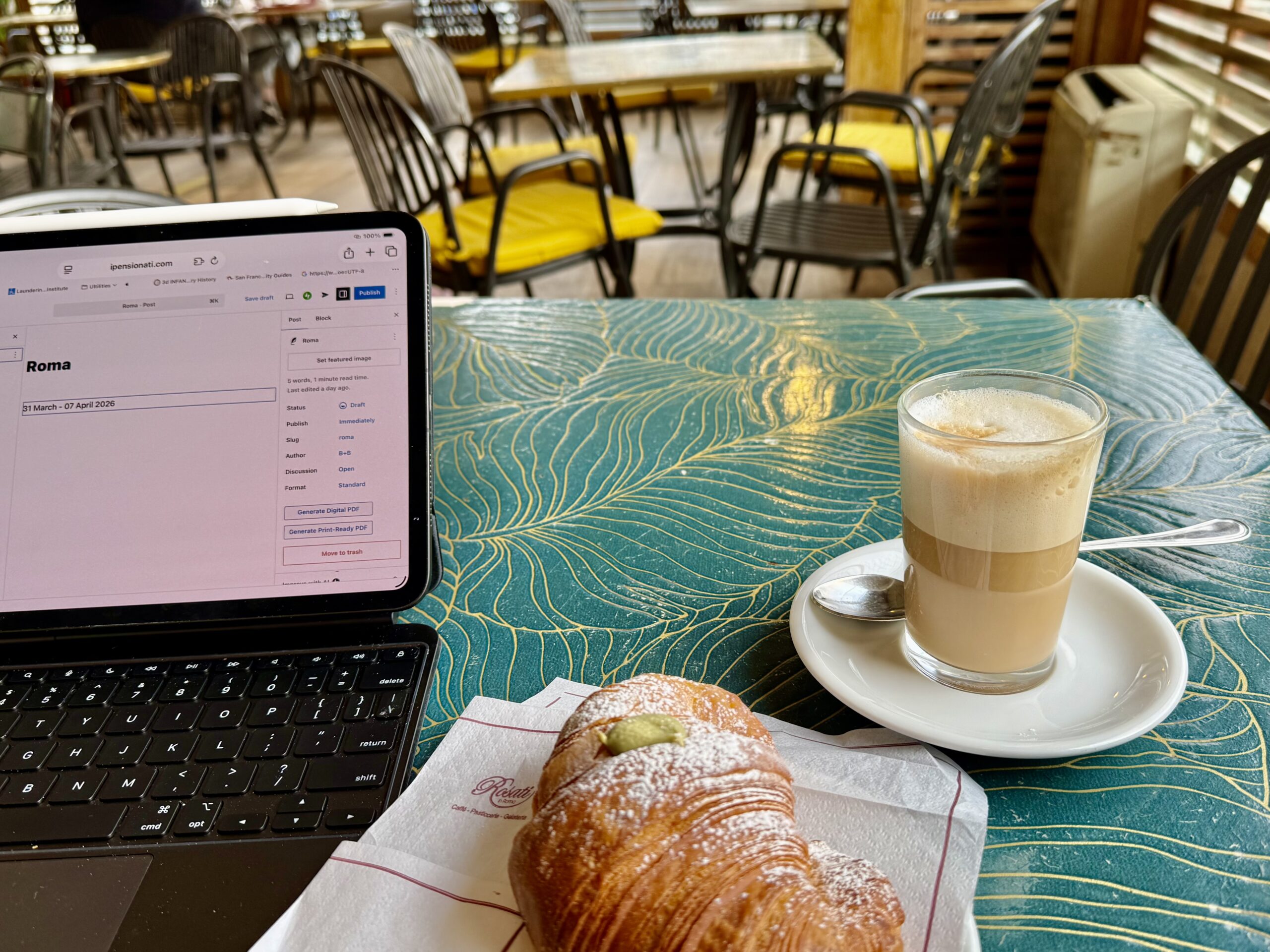 Spending time with Sabbatini cousins. We decided to hang out for a week without an agenda. A good way to go. This gave us time to do things like laundry(!) and practice our Italian conversation, but mostly we chilled at Luciana’s apartment. And Luciana already had a few excursions and restaurants planned for us. We especially enjoy being in the Montesacro neighborhood, about five miles from the center of Rome, where we know the shops and restaurants quite well. Because Luciana’s apartment was full, we found a B&B a block away.