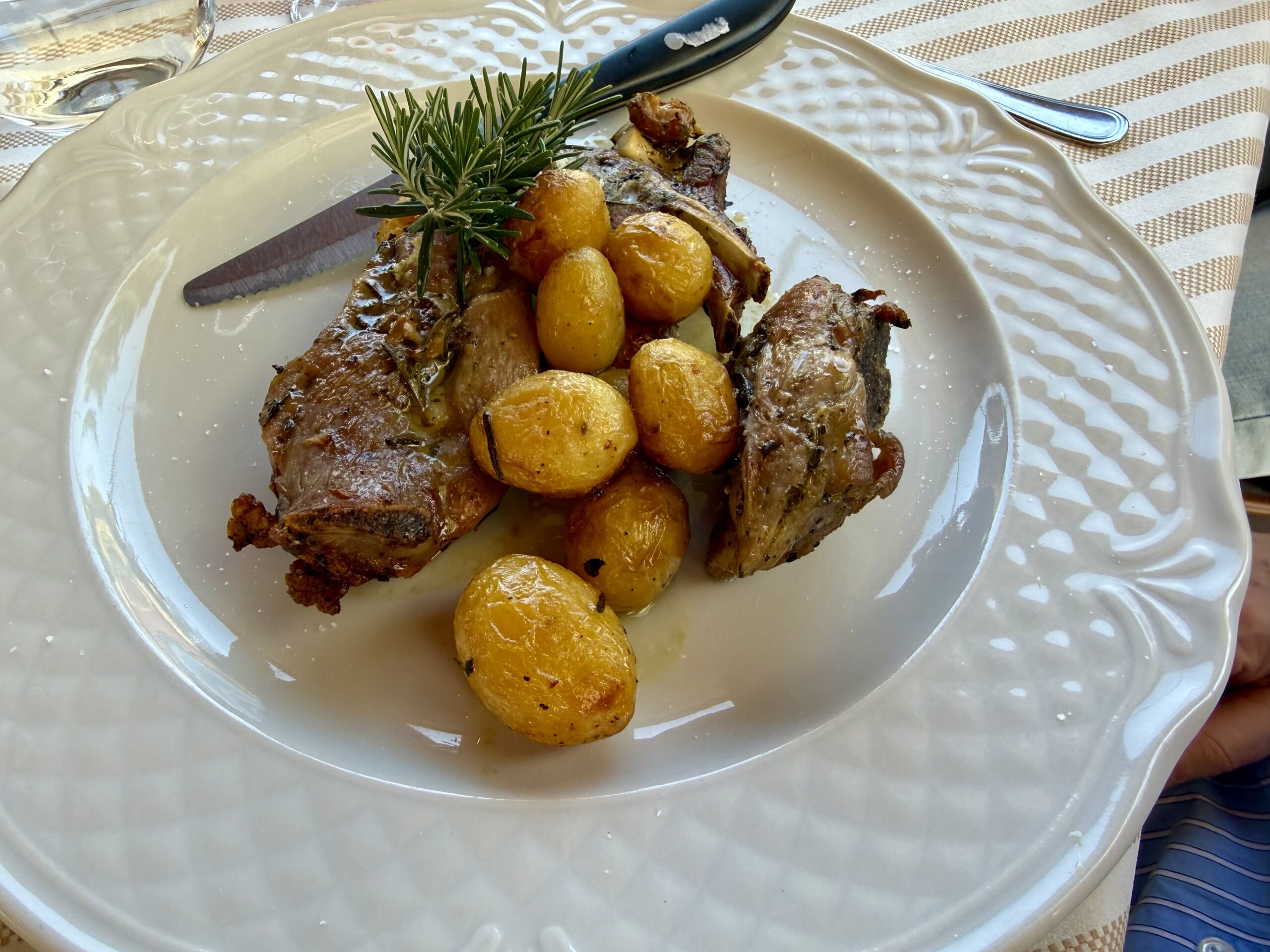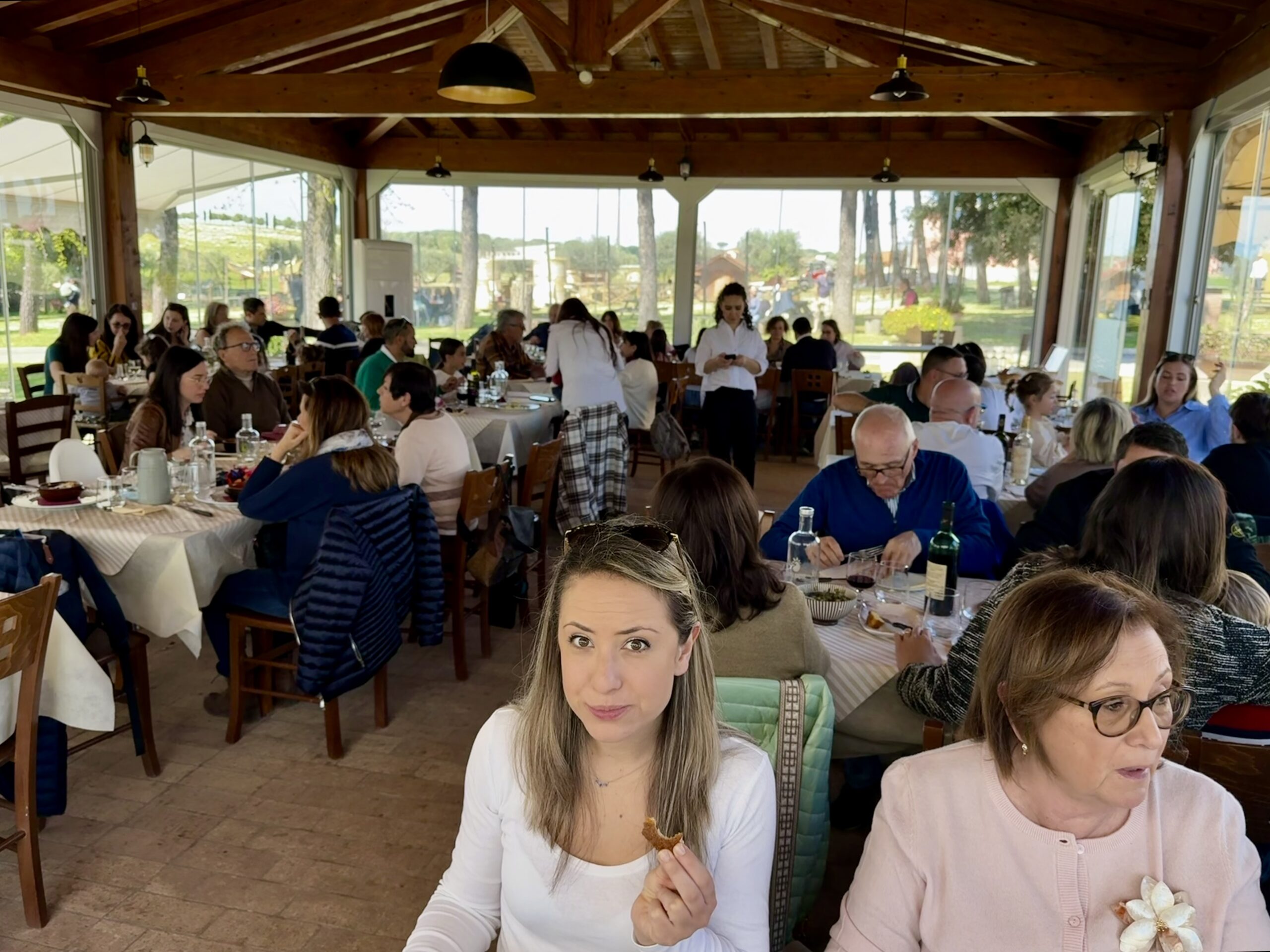 For an Easter meal our family group of nine drove to the country, as many Italians do on a Sunday. Although only 15 minutes away, Oasi Kadir feels deep in Rome’s rural countryside. The restaurant is one element in this self-sustaining farm, beautifully maintained by a group of Libyan Muslims, where they raise dairy cows, goats, chickens, geese, and ducks, and they make cheese, grow vegetables, and manage olive orchards.
