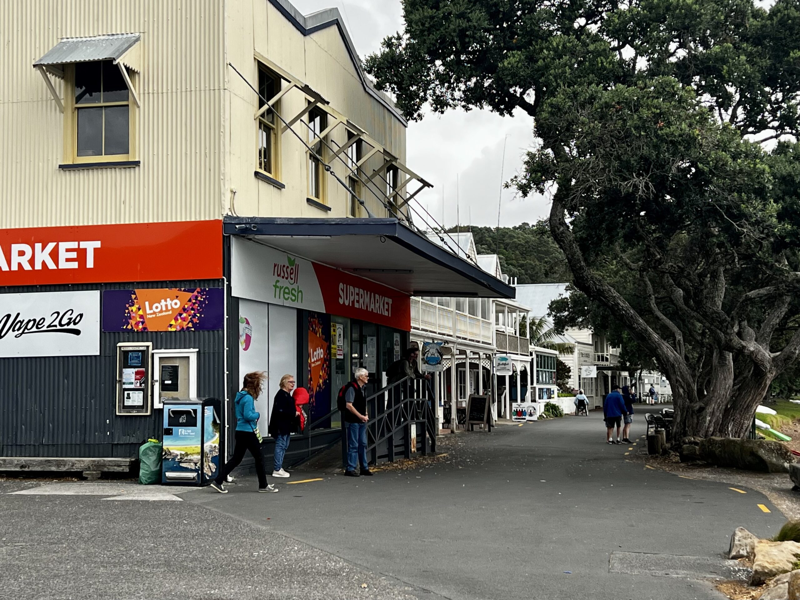 Because we were here for several days, we were able to drive farther north to the scenic Bay of Islands, a well-known vacation destination. Our first stop was Paihia (population 2,800), a pleasant small town with waterfront moorings for boats and a helicopter outfit for touring the islands. Our next destination was Russell (population 810) via a small car ferry. It was the first sea port and permanent British settlement in New Zealand. At one time, Russell was known as the The Hell Hole of the Pacific for lawlessness. A bit like the Barbary Coast in San Francisco. The Bay of Islands offered the Māori a natural harbor and bountiful natural resources. Trade with Europeans in timber, liquor, and guns helped create a community without European or Maori laws. Prostitution became rampant. Missionaries later came to the rescue along with New Zealand’s first printing press that they used to print the Bible in Māori.